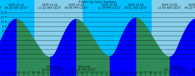2025-10-23 11:06 PM CEST 2.66 feet Low Tide 2025-10-24 04:29 AM CEST 10.71 feet High Tide 2025-10-24 08:12 AM CEST Sunrise 2025-10-24 11:22 AM CEST 2.45 feet Low Tide 2025-10-24 12:04 PM CEST Moonrise 2025-10-24 04:45 PM CEST 10.67 feet High Tide 2025-10-24 06:05 PM CEST Sunset 2025-10-24 06:26 PM CEST Moonset 2025-10-24 11:35 PM CEST 2.64 feet Low Tide 2025-10-25 05:01 AM CEST 10.96 feet High Tide 2025-10-25 08:14 AM CEST Sunrise 2025-10-25 11:54 AM CEST 2.53 feet Low Tide 2025-10-25 01:16 PM CEST Moonrise 2025-10-25 05:22 PM CEST 10.75 feet High Tide 2025-10-25 06:03 PM CEST Sunset 2025-10-25 06:58 PM CEST Moonset 2025-10-26 12:07 AM CEST 3.00 feet Low Tide 2025-10-26 04:38 AM CET 11.07 feet High Tide 2025-10-26 07:16 AM CET Sunrise 2025-10-26 11:28 AM CET 3.01 feet Low Tide 2025-10-26 01:16 PM CET Moonrise 2025-10-26 05:00 PM CET 10.62 feet High Tide 2025-10-26 05:01 PM CET Sunset 2025-10-26 06:44 PM CET Moonset 2025-10-26 11:39 PM CET 3.75 feet Low Tide 2025-10-27 05:11 AM CET 11.00 feet High Tide 2025-10-27 07:18 AM CET Sunrise 2025-10-27 12:02 PM CET 3.78 feet Low Tide 2025-10-27 02:00 PM CET Moonrise 2025-10-27 04:59 PM CET Sunset 2025-10-27 05:33 PM CET 10.29 feet High Tide 2025-10-27 07:48 PM CET Moonset |