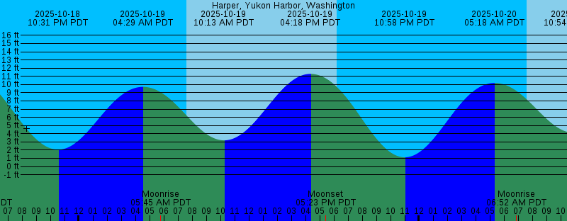 2025-10-18 03:59 PM PDT 11.40 feet High Tide 2025-10-18 05:09 PM PDT Moonset 2025-10-18 06:15 PM PDT Sunset 2025-10-18 10:31 PM PDT 2.05 feet Low Tide 2025-10-19 04:29 AM PDT 9.71 feet High Tide 2025-10-19 05:45 AM PDT Moonrise 2025-10-19 07:35 AM PDT Sunrise 2025-10-19 10:13 AM PDT 3.19 feet Low Tide 2025-10-19 04:18 PM PDT 11.29 feet High Tide 2025-10-19 05:23 PM PDT Moonset 2025-10-19 06:13 PM PDT Sunset 2025-10-19 10:58 PM PDT 1.12 feet Low Tide 2025-10-20 05:18 AM PDT 10.19 feet High Tide 2025-10-20 06:52 AM PDT Moonrise 2025-10-20 07:36 AM PDT Sunrise 2025-10-20 10:54 AM PDT 4.11 feet Low Tide 2025-10-20 04:36 PM PDT 11.15 feet High Tide 2025-10-20 05:38 PM PDT Moonset 2025-10-20 06:12 PM PDT Sunset 2025-10-20 11:23 PM PDT 0.33 feet Low Tide 2025-10-21 05:25 AM PDT New Moon 2025-10-21 06:01 AM PDT 10.62 feet High Tide 2025-10-21 07:38 AM PDT Sunrise 2025-10-21 08:00 AM PDT Moonrise 2025-10-21 11:32 AM PDT 5.04 feet Low Tide 2025-10-21 04:56 PM PDT 10.97 feet High Tide 2025-10-21 05:54 PM PDT Moonset 2025-10-21 06:10 PM PDT Sunset 2025-10-21 11:49 PM PDT -0.30 feet Low Tide 2025-10-22 06:41 AM PDT 10.98 feet High Tide 2025-10-22 07:39 AM PDT Sunrise 2025-10-22 09:09 AM PDT Moonrise 2025-10-22 12:11 PM PDT 5.91 feet Low Tide |