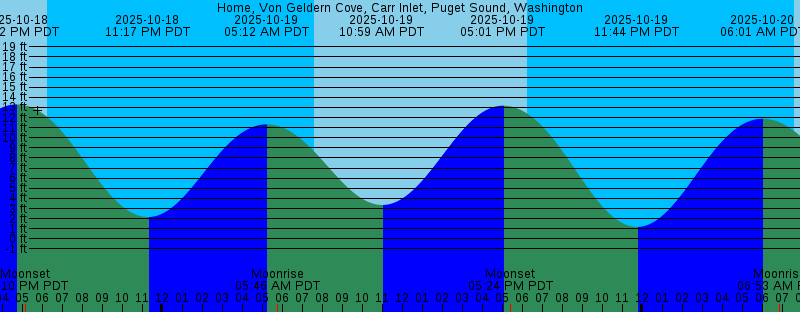 2025-10-18 04:42 PM PDT 13.30 feet High Tide 2025-10-18 05:10 PM PDT Moonset 2025-10-18 06:17 PM PDT Sunset 2025-10-18 11:17 PM PDT 2.16 feet Low Tide 2025-10-19 05:12 AM PDT 11.33 feet High Tide 2025-10-19 05:46 AM PDT Moonrise 2025-10-19 07:35 AM PDT Sunrise 2025-10-19 10:59 AM PDT 3.35 feet Low Tide 2025-10-19 05:01 PM PDT 13.18 feet High Tide 2025-10-19 05:24 PM PDT Moonset 2025-10-19 06:15 PM PDT Sunset 2025-10-19 11:44 PM PDT 1.18 feet Low Tide 2025-10-20 06:01 AM PDT 11.89 feet High Tide 2025-10-20 06:53 AM PDT Moonrise 2025-10-20 07:37 AM PDT Sunrise 2025-10-20 11:40 AM PDT 4.32 feet Low Tide 2025-10-20 05:19 PM PDT 13.01 feet High Tide 2025-10-20 05:39 PM PDT Moonset 2025-10-20 06:13 PM PDT Sunset 2025-10-21 12:09 AM PDT 0.35 feet Low Tide 2025-10-21 05:25 AM PDT New Moon 2025-10-21 06:44 AM PDT 12.39 feet High Tide 2025-10-21 07:38 AM PDT Sunrise 2025-10-21 08:00 AM PDT Moonrise 2025-10-21 12:18 PM PDT 5.30 feet Low Tide 2025-10-21 05:39 PM PDT 12.79 feet High Tide 2025-10-21 05:56 PM PDT Moonset 2025-10-21 06:11 PM PDT Sunset 2025-10-22 12:35 AM PDT -0.32 feet Low Tide 2025-10-22 07:24 AM PDT 12.81 feet High Tide 2025-10-22 07:40 AM PDT Sunrise 2025-10-22 09:09 AM PDT Moonrise |