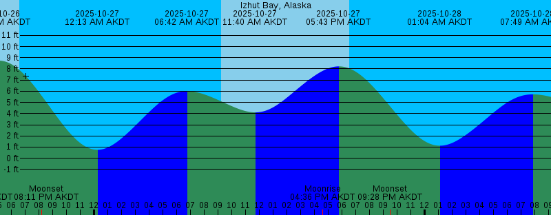 2025-10-26 11:02 AM AKDT 3.75 feet Low Tide 2025-10-26 04:05 PM AKDT Moonrise 2025-10-26 05:01 PM AKDT 8.74 feet High Tide 2025-10-26 06:33 PM AKDT Sunset 2025-10-26 08:11 PM AKDT Moonset 2025-10-27 12:12 AM AKDT 0.76 feet Low Tide 2025-10-27 06:42 AM AKDT 6.01 feet High Tide 2025-10-27 09:13 AM AKDT Sunrise 2025-10-27 11:40 AM AKDT 4.11 feet Low Tide 2025-10-27 04:36 PM AKDT Moonrise 2025-10-27 05:43 PM AKDT 8.23 feet High Tide 2025-10-27 06:31 PM AKDT Sunset 2025-10-27 09:28 PM AKDT Moonset 2025-10-28 01:04 AM AKDT 1.13 feet Low Tide 2025-10-28 07:49 AM AKDT 5.72 feet High Tide 2025-10-28 09:16 AM AKDT Sunrise 2025-10-28 12:33 PM AKDT 4.41 feet Low Tide 2025-10-28 04:52 PM AKDT Moonrise 2025-10-28 06:28 PM AKDT Sunset 2025-10-28 06:38 PM AKDT 7.67 feet High Tide 2025-10-28 10:58 PM AKDT Moonset 2025-10-29 02:07 AM AKDT 1.38 feet Low Tide 2025-10-29 08:22 AM AKDT First Quarter 2025-10-29 09:12 AM AKDT 5.76 feet High Tide 2025-10-29 09:18 AM AKDT Sunrise 2025-10-29 01:55 PM AKDT 4.51 feet Low Tide 2025-10-29 05:00 PM AKDT Moonrise 2025-10-29 06:26 PM AKDT Sunset 2025-10-29 07:50 PM AKDT 7.18 feet High Tide 2025-10-30 12:32 AM AKDT Moonset 2025-10-30 03:18 AM AKDT 1.43 feet Low Tide 2025-10-30 09:20 AM AKDT Sunrise |