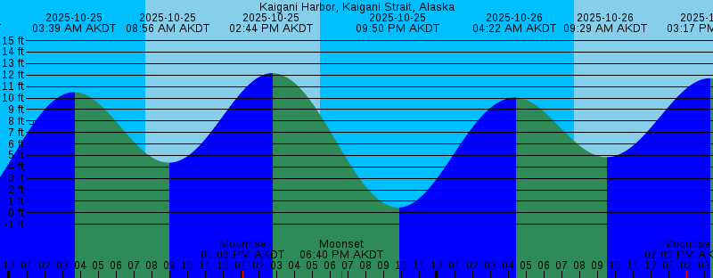 2025-10-24 11:58 AM AKDT Moonrise 2025-10-24 02:15 PM AKDT 12.50 feet High Tide 2025-10-24 05:30 PM AKDT Sunset 2025-10-24 06:03 PM AKDT Moonset 2025-10-24 09:12 PM AKDT 0.04 feet Low Tide 2025-10-25 03:39 AM AKDT 10.51 feet High Tide 2025-10-25 07:40 AM AKDT Sunrise 2025-10-25 08:56 AM AKDT 4.37 feet Low Tide 2025-10-25 01:06 PM AKDT Moonrise 2025-10-25 02:44 PM AKDT 12.16 feet High Tide 2025-10-25 05:28 PM AKDT Sunset 2025-10-25 06:40 PM AKDT Moonset 2025-10-25 09:50 PM AKDT 0.47 feet Low Tide 2025-10-26 04:22 AM AKDT 10.04 feet High Tide 2025-10-26 07:42 AM AKDT Sunrise 2025-10-26 09:29 AM AKDT 4.85 feet Low Tide 2025-10-26 02:00 PM AKDT Moonrise 2025-10-26 03:17 PM AKDT 11.72 feet High Tide 2025-10-26 05:25 PM AKDT Sunset 2025-10-26 07:33 PM AKDT Moonset 2025-10-26 10:33 PM AKDT 0.95 feet Low Tide 2025-10-27 05:15 AM AKDT 9.59 feet High Tide 2025-10-27 07:44 AM AKDT Sunrise 2025-10-27 10:09 AM AKDT 5.29 feet Low Tide 2025-10-27 02:38 PM AKDT Moonrise 2025-10-27 03:56 PM AKDT 11.19 feet High Tide 2025-10-27 05:23 PM AKDT Sunset 2025-10-27 08:43 PM AKDT Moonset 2025-10-27 11:25 PM AKDT 1.40 feet Low Tide 2025-10-28 06:23 AM AKDT 9.30 feet High Tide 2025-10-28 07:46 AM AKDT Sunrise |