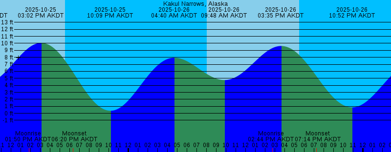2025-10-25 03:57 AM AKDT 8.41 feet High Tide 2025-10-25 08:00 AM AKDT Sunrise 2025-10-25 09:15 AM AKDT 4.27 feet Low Tide 2025-10-25 01:50 PM AKDT Moonrise 2025-10-25 03:02 PM AKDT 10.06 feet High Tide 2025-10-25 05:32 PM AKDT Sunset 2025-10-25 06:20 PM AKDT Moonset 2025-10-25 10:09 PM AKDT 0.37 feet Low Tide 2025-10-26 04:40 AM AKDT 7.94 feet High Tide 2025-10-26 08:02 AM AKDT Sunrise 2025-10-26 09:48 AM AKDT 4.75 feet Low Tide 2025-10-26 02:44 PM AKDT Moonrise 2025-10-26 03:35 PM AKDT 9.62 feet High Tide 2025-10-26 05:30 PM AKDT Sunset 2025-10-26 07:14 PM AKDT Moonset 2025-10-26 10:52 PM AKDT 0.85 feet Low Tide 2025-10-27 05:33 AM AKDT 7.49 feet High Tide 2025-10-27 08:04 AM AKDT Sunrise 2025-10-27 10:28 AM AKDT 5.19 feet Low Tide 2025-10-27 03:17 PM AKDT Moonrise 2025-10-27 04:14 PM AKDT 9.09 feet High Tide 2025-10-27 05:27 PM AKDT Sunset 2025-10-27 08:29 PM AKDT Moonset 2025-10-27 11:44 PM AKDT 1.30 feet Low Tide 2025-10-28 06:41 AM AKDT 7.20 feet High Tide 2025-10-28 08:06 AM AKDT Sunrise 2025-10-28 11:26 AM AKDT 5.53 feet Low Tide 2025-10-28 03:36 PM AKDT Moonrise 2025-10-28 05:07 PM AKDT 8.49 feet High Tide 2025-10-28 05:25 PM AKDT Sunset 2025-10-28 09:55 PM AKDT Moonset 2025-10-29 12:48 AM AKDT 1.61 feet Low Tide |