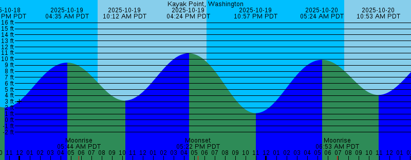 2025-10-18 05:09 PM PDT Moonset 2025-10-18 06:14 PM PDT Sunset 2025-10-18 10:30 PM PDT 2.05 feet Low Tide 2025-10-19 04:35 AM PDT 9.43 feet High Tide 2025-10-19 05:44 AM PDT Moonrise 2025-10-19 07:35 AM PDT Sunrise 2025-10-19 10:12 AM PDT 3.19 feet Low Tide 2025-10-19 04:24 PM PDT 10.96 feet High Tide 2025-10-19 05:22 PM PDT Moonset 2025-10-19 06:12 PM PDT Sunset 2025-10-19 10:57 PM PDT 1.12 feet Low Tide 2025-10-20 05:24 AM PDT 9.89 feet High Tide 2025-10-20 06:53 AM PDT Moonrise 2025-10-20 07:37 AM PDT Sunrise 2025-10-20 10:53 AM PDT 4.11 feet Low Tide 2025-10-20 04:42 PM PDT 10.82 feet High Tide 2025-10-20 05:36 PM PDT Moonset 2025-10-20 06:10 PM PDT Sunset 2025-10-20 11:22 PM PDT 0.33 feet Low Tide 2025-10-21 05:25 AM PDT New Moon 2025-10-21 06:07 AM PDT 10.30 feet High Tide 2025-10-21 07:38 AM PDT Sunrise 2025-10-21 08:01 AM PDT Moonrise 2025-10-21 11:31 AM PDT 5.04 feet Low Tide 2025-10-21 05:02 PM PDT 10.64 feet High Tide 2025-10-21 05:52 PM PDT Moonset 2025-10-21 06:08 PM PDT Sunset 2025-10-21 11:48 PM PDT -0.30 feet Low Tide 2025-10-22 06:47 AM PDT 10.66 feet High Tide 2025-10-22 07:40 AM PDT Sunrise 2025-10-22 09:10 AM PDT Moonrise 2025-10-22 12:10 PM PDT 5.91 feet Low Tide |