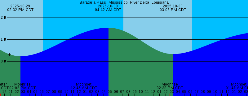 2025-10-29 11:22 AM CDT First Quarter 2025-10-29 02:02 PM CDT Moonrise 2025-10-29 02:32 PM CDT 0.23 feet Low Tide 2025-10-29 06:15 PM CDT Sunset 2025-10-30 12:46 AM CDT Moonset 2025-10-30 04:42 AM CDT 1.53 feet High Tide 2025-10-30 07:11 AM CDT Sunrise 2025-10-30 02:38 PM CDT Moonrise 2025-10-30 03:08 PM CDT 0.33 feet Low Tide 2025-10-30 06:14 PM CDT Sunset 2025-10-31 01:47 AM CDT Moonset 2025-10-31 05:49 AM CDT 1.36 feet High Tide 2025-10-31 07:12 AM CDT Sunrise 2025-10-31 03:11 PM CDT Moonrise 2025-10-31 03:35 PM CDT 0.49 feet Low Tide 2025-10-31 06:14 PM CDT Sunset 2025-11-01 02:49 AM CDT Moonset 2025-11-01 07:12 AM CDT Sunrise 2025-11-01 07:54 AM CDT 1.13 feet High Tide 2025-11-01 03:41 PM CDT 0.71 feet Low Tide 2025-11-01 03:43 PM CDT Moonrise 2025-11-01 06:13 PM CDT Sunset 2025-11-01 11:23 PM CDT 0.93 feet High Tide 2025-11-02 02:53 AM CST Moonset 2025-11-02 03:05 AM CST 0.79 feet Low Tide 2025-11-02 06:13 AM CST Sunrise |