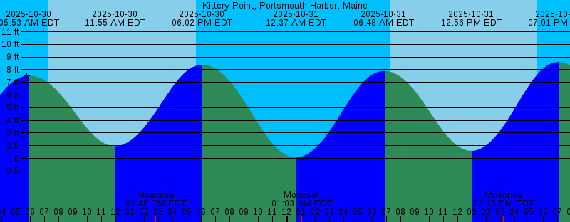 2025-10-30 05:53 AM EDT 7.53 feet High Tide 2025-10-30 07:15 AM EDT Sunrise 2025-10-30 11:55 AM EDT 1.97 feet Low Tide 2025-10-30 02:47 PM EDT Moonrise 2025-10-30 05:36 PM EDT Sunset 2025-10-30 06:02 PM EDT 8.39 feet High Tide 2025-10-31 12:37 AM EDT 1.08 feet Low Tide 2025-10-31 01:03 AM EDT Moonset 2025-10-31 06:48 AM EDT 7.90 feet High Tide 2025-10-31 07:16 AM EDT Sunrise 2025-10-31 12:56 PM EDT 1.60 feet Low Tide 2025-10-31 03:10 PM EDT Moonrise 2025-10-31 05:35 PM EDT Sunset 2025-10-31 07:01 PM EDT 8.60 feet High Tide 2025-11-01 01:31 AM EDT 0.78 feet Low Tide 2025-11-01 02:16 AM EDT Moonset 2025-11-01 07:18 AM EDT Sunrise 2025-11-01 07:41 AM EDT 8.45 feet High Tide 2025-11-01 01:55 PM EDT 1.03 feet Low Tide 2025-11-01 03:31 PM EDT Moonrise 2025-11-01 05:34 PM EDT Sunset 2025-11-01 07:59 PM EDT 8.92 feet High Tide 2025-11-02 01:23 AM EST 0.40 feet Low Tide 2025-11-02 02:30 AM EST Moonset 2025-11-02 06:19 AM EST Sunrise 2025-11-02 07:32 AM EST 9.13 feet High Tide 2025-11-02 01:51 PM EST 0.32 feet Low Tide 2025-11-02 02:53 PM EST Moonrise 2025-11-02 04:32 PM EST Sunset 2025-11-02 07:55 PM EST 9.28 feet High Tide |