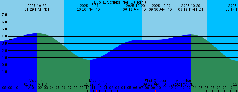 2025-10-28 07:03 AM PDT Sunrise 2025-10-28 01:25 PM PDT Moonrise 2025-10-28 01:29 PM PDT 4.44 feet High Tide 2025-10-28 06:01 PM PDT Sunset 2025-10-28 10:16 PM PDT 0.73 feet Low Tide 2025-10-28 11:29 PM PDT Moonset 2025-10-29 06:42 AM PDT 3.51 feet High Tide 2025-10-29 07:04 AM PDT Sunrise 2025-10-29 09:22 AM PDT First Quarter 2025-10-29 09:36 AM PDT 3.55 feet Low Tide 2025-10-29 02:02 PM PDT Moonrise 2025-10-29 03:19 PM PDT 4.24 feet High Tide 2025-10-29 06:00 PM PDT Sunset 2025-10-29 11:14 PM PDT 0.56 feet Low Tide 2025-10-30 12:32 AM PDT Moonset 2025-10-30 06:39 AM PDT 3.88 feet High Tide 2025-10-30 07:05 AM PDT Sunrise 2025-10-30 11:27 AM PDT 3.01 feet Low Tide 2025-10-30 02:36 PM PDT Moonrise 2025-10-30 04:55 PM PDT 4.30 feet High Tide 2025-10-30 05:59 PM PDT Sunset 2025-10-30 11:58 PM PDT 0.40 feet Low Tide 2025-10-31 01:36 AM PDT Moonset 2025-10-31 06:53 AM PDT 4.35 feet High Tide 2025-10-31 07:06 AM PDT Sunrise 2025-10-31 12:24 PM PDT 2.22 feet Low Tide 2025-10-31 03:06 PM PDT Moonrise 2025-10-31 05:58 PM PDT Sunset 2025-10-31 06:05 PM PDT 4.48 feet High Tide |