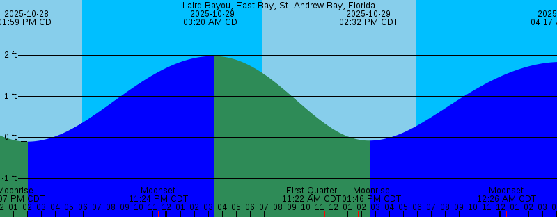 2025-10-28 06:53 AM CDT Sunrise 2025-10-28 01:07 PM CDT Moonrise 2025-10-28 01:59 PM CDT -0.11 feet Low Tide 2025-10-28 05:57 PM CDT Sunset 2025-10-28 11:24 PM CDT Moonset 2025-10-29 03:20 AM CDT 1.97 feet High Tide 2025-10-29 06:54 AM CDT Sunrise 2025-10-29 11:22 AM CDT First Quarter 2025-10-29 01:46 PM CDT Moonrise 2025-10-29 02:32 PM CDT -0.09 feet Low Tide 2025-10-29 05:57 PM CDT Sunset 2025-10-30 12:26 AM CDT Moonset 2025-10-30 04:17 AM CDT 1.83 feet High Tide 2025-10-30 06:54 AM CDT Sunrise 2025-10-30 02:21 PM CDT Moonrise 2025-10-30 02:55 PM CDT 0.04 feet Low Tide 2025-10-30 05:56 PM CDT Sunset 2025-10-31 01:28 AM CDT Moonset 2025-10-31 05:30 AM CDT 1.59 feet High Tide 2025-10-31 06:55 AM CDT Sunrise 2025-10-31 02:54 PM CDT Moonrise 2025-10-31 03:10 PM CDT 0.28 feet Low Tide 2025-10-31 05:55 PM CDT Sunset 2025-11-01 02:30 AM CDT Moonset |