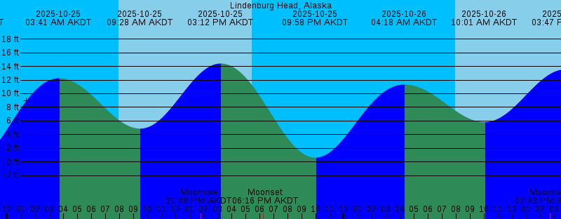 2025-10-24 12:35 PM AKDT Moonrise 2025-10-24 02:42 PM AKDT 15.10 feet High Tide 2025-10-24 05:32 PM AKDT Sunset 2025-10-24 05:44 PM AKDT Moonset 2025-10-24 09:24 PM AKDT -0.20 feet Low Tide 2025-10-25 03:41 AM AKDT 12.25 feet High Tide 2025-10-25 07:57 AM AKDT Sunrise 2025-10-25 09:28 AM AKDT 4.88 feet Low Tide 2025-10-25 01:48 PM AKDT Moonrise 2025-10-25 03:12 PM AKDT 14.42 feet High Tide 2025-10-25 05:29 PM AKDT Sunset 2025-10-25 06:16 PM AKDT Moonset 2025-10-25 09:58 PM AKDT 0.62 feet Low Tide 2025-10-26 04:18 AM AKDT 11.33 feet High Tide 2025-10-26 07:59 AM AKDT Sunrise 2025-10-26 10:01 AM AKDT 5.83 feet Low Tide 2025-10-26 02:43 PM AKDT Moonrise 2025-10-26 03:47 PM AKDT 13.56 feet High Tide 2025-10-26 05:27 PM AKDT Sunset 2025-10-26 07:10 PM AKDT Moonset 2025-10-26 10:37 PM AKDT 1.55 feet Low Tide 2025-10-27 05:04 AM AKDT 10.39 feet High Tide 2025-10-27 08:02 AM AKDT Sunrise 2025-10-27 10:42 AM AKDT 6.75 feet Low Tide 2025-10-27 03:16 PM AKDT Moonrise 2025-10-27 04:28 PM AKDT 12.57 feet High Tide 2025-10-27 05:24 PM AKDT Sunset 2025-10-27 08:25 PM AKDT Moonset 2025-10-27 11:26 PM AKDT 2.47 feet Low Tide 2025-10-28 06:09 AM AKDT 9.67 feet High Tide 2025-10-28 08:04 AM AKDT Sunrise |