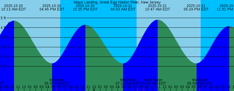 2025-10-20 06:22 AM EDT Moonrise 2025-10-20 07:14 AM EDT Sunrise 2025-10-20 10:13 AM EDT 4.72 feet High Tide 2025-10-20 04:45 PM EDT 0.32 feet Low Tide 2025-10-20 05:37 PM EDT Moonset 2025-10-20 06:12 PM EDT Sunset 2025-10-20 10:25 PM EDT 4.30 feet High Tide 2025-10-21 04:53 AM EDT 0.31 feet Low Tide 2025-10-21 07:15 AM EDT Sunrise 2025-10-21 07:23 AM EDT Moonrise 2025-10-21 08:25 AM EDT New Moon 2025-10-21 10:47 AM EDT 4.82 feet High Tide 2025-10-21 05:24 PM EDT 0.31 feet Low Tide 2025-10-21 05:59 PM EDT Moonset 2025-10-21 06:10 PM EDT Sunset 2025-10-21 11:01 PM EDT 4.16 feet High Tide 2025-10-22 05:25 AM EDT 0.40 feet Low Tide 2025-10-22 07:16 AM EDT Sunrise 2025-10-22 08:25 AM EDT Moonrise 2025-10-22 11:21 AM EDT 4.85 feet High Tide 2025-10-22 06:02 PM EDT 0.36 feet Low Tide 2025-10-22 06:09 PM EDT Sunset 2025-10-22 06:25 PM EDT Moonset 2025-10-22 11:36 PM EDT 3.98 feet High Tide 2025-10-23 05:55 AM EDT 0.53 feet Low Tide 2025-10-23 07:17 AM EDT Sunrise 2025-10-23 09:27 AM EDT Moonrise 2025-10-23 11:55 AM EDT 4.82 feet High Tide 2025-10-23 06:08 PM EDT Sunset 2025-10-23 06:41 PM EDT 0.47 feet Low Tide 2025-10-23 06:56 PM EDT Moonset 2025-10-24 12:12 AM EDT 3.77 feet High Tide |