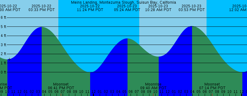 2025-10-22 04:34 AM PDT 3.77 feet High Tide 2025-10-22 07:23 AM PDT Sunrise 2025-10-22 08:39 AM PDT Moonrise 2025-10-22 10:00 AM PDT 1.41 feet Low Tide 2025-10-22 03:33 PM PDT 4.97 feet High Tide 2025-10-22 06:19 PM PDT Sunset 2025-10-22 06:41 PM PDT Moonset 2025-10-22 11:24 PM PDT -0.02 feet Low Tide 2025-10-23 05:24 AM PDT 3.71 feet High Tide 2025-10-23 07:24 AM PDT Sunrise 2025-10-23 09:40 AM PDT Moonrise 2025-10-23 10:28 AM PDT 1.71 feet Low Tide 2025-10-23 03:53 PM PDT 5.07 feet High Tide 2025-10-23 06:18 PM PDT Sunset 2025-10-23 07:14 PM PDT Moonset 2025-10-24 12:02 AM PDT -0.00 feet Low Tide 2025-10-24 06:17 AM PDT 3.65 feet High Tide 2025-10-24 07:25 AM PDT Sunrise 2025-10-24 10:41 AM PDT Moonrise 2025-10-24 11:02 AM PDT 1.95 feet Low Tide 2025-10-24 04:19 PM PDT 5.12 feet High Tide 2025-10-24 06:17 PM PDT Sunset 2025-10-24 07:52 PM PDT Moonset 2025-10-25 12:40 AM PDT 0.03 feet Low Tide 2025-10-25 07:12 AM PDT 3.58 feet High Tide 2025-10-25 07:26 AM PDT Sunrise 2025-10-25 11:39 AM PDT Moonrise 2025-10-25 11:42 AM PDT 2.12 feet Low Tide 2025-10-25 04:54 PM PDT 5.07 feet High Tide 2025-10-25 06:15 PM PDT Sunset 2025-10-25 08:37 PM PDT Moonset |