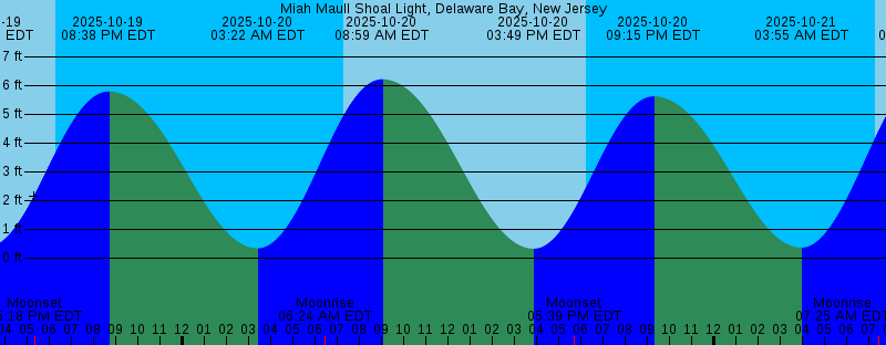 2025-10-19 03:08 PM EDT 0.38 feet Low Tide 2025-10-19 05:18 PM EDT Moonset 2025-10-19 06:16 PM EDT Sunset 2025-10-19 08:38 PM EDT 5.79 feet High Tide 2025-10-20 03:22 AM EDT 0.33 feet Low Tide 2025-10-20 06:24 AM EDT Moonrise 2025-10-20 07:15 AM EDT Sunrise 2025-10-20 08:59 AM EDT 6.21 feet High Tide 2025-10-20 03:49 PM EDT 0.32 feet Low Tide 2025-10-20 05:39 PM EDT Moonset 2025-10-20 06:14 PM EDT Sunset 2025-10-20 09:15 PM EDT 5.61 feet High Tide 2025-10-21 03:55 AM EDT 0.35 feet Low Tide 2025-10-21 07:16 AM EDT Sunrise 2025-10-21 07:25 AM EDT Moonrise 2025-10-21 08:25 AM EDT New Moon 2025-10-21 09:33 AM EDT 6.35 feet High Tide 2025-10-21 04:29 PM EDT 0.32 feet Low Tide 2025-10-21 06:02 PM EDT Moonset 2025-10-21 06:13 PM EDT Sunset 2025-10-21 09:49 PM EDT 5.41 feet High Tide 2025-10-22 04:27 AM EDT 0.43 feet Low Tide 2025-10-22 07:17 AM EDT Sunrise 2025-10-22 08:26 AM EDT Moonrise 2025-10-22 10:07 AM EDT 6.41 feet High Tide 2025-10-22 05:07 PM EDT 0.38 feet Low Tide 2025-10-22 06:11 PM EDT Sunset 2025-10-22 06:28 PM EDT Moonset 2025-10-22 10:24 PM EDT 5.19 feet High Tide 2025-10-23 04:59 AM EDT 0.54 feet Low Tide 2025-10-23 07:18 AM EDT Sunrise 2025-10-23 09:28 AM EDT Moonrise 2025-10-23 10:41 AM EDT 6.39 feet High Tide |