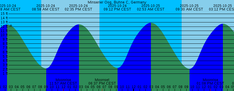 2025-10-24 02:18 AM CEST 12.48 feet High Tide 2025-10-24 08:12 AM CEST Sunrise 2025-10-24 08:58 AM CEST 2.23 feet Low Tide 2025-10-24 11:57 AM CEST Moonrise 2025-10-24 02:35 PM CEST 12.51 feet High Tide 2025-10-24 06:10 PM CEST Sunset 2025-10-24 06:37 PM CEST Moonset 2025-10-24 09:12 PM CEST 2.34 feet Low Tide 2025-10-25 02:53 AM CEST 12.89 feet High Tide 2025-10-25 08:14 AM CEST Sunrise 2025-10-25 09:30 AM CEST 2.13 feet Low Tide 2025-10-25 01:08 PM CEST Moonrise 2025-10-25 03:12 PM CEST 12.66 feet High Tide 2025-10-25 06:08 PM CEST Sunset 2025-10-25 07:10 PM CEST Moonset 2025-10-25 09:44 PM CEST 2.63 feet Low Tide 2025-10-26 02:31 AM CET 12.95 feet High Tide 2025-10-26 07:16 AM CET Sunrise 2025-10-26 09:04 AM CET 2.65 feet Low Tide 2025-10-26 01:08 PM CET Moonrise 2025-10-26 02:50 PM CET 12.40 feet High Tide 2025-10-26 05:06 PM CET Sunset 2025-10-26 06:57 PM CET Moonset 2025-10-26 09:15 PM CET 3.48 feet Low Tide 2025-10-27 03:07 AM CET 12.64 feet High Tide 2025-10-27 07:18 AM CET Sunrise 2025-10-27 09:36 AM CET 3.59 feet Low Tide 2025-10-27 01:52 PM CET Moonrise 2025-10-27 03:25 PM CET 11.83 feet High Tide 2025-10-27 05:04 PM CET Sunset 2025-10-27 08:00 PM CET Moonset |