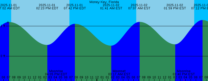 | 2025-11-01 01:40 AM EDT 0.51 feet Low Tide 2025-11-01 03:16 AM EDT Moonset 2025-11-01 07:02 AM EDT 1.13 feet High Tide 2025-11-01 07:32 AM EDT Sunrise 2025-11-01 02:23 PM EDT 0.37 feet Low Tide 2025-11-01 04:05 PM EDT Moonrise 2025-11-01 06:44 PM EDT Sunset 2025-11-01 07:42 PM EDT 1.07 feet High Tide 2025-11-02 01:41 AM EST 0.35 feet Low Tide 2025-11-02 03:17 AM EST Moonset 2025-11-02 06:32 AM EST Sunrise 2025-11-02 07:07 AM EST 1.14 feet High Tide 2025-11-02 01:59 PM EST 0.39 feet Low Tide 2025-11-02 03:40 PM EST Moonrise 2025-11-02 05:43 PM EST Sunset 2025-11-02 07:12 PM EST 1.20 feet High Tide 2025-11-03 02:35 AM EST 0.17 feet Low Tide 2025-11-03 04:20 AM EST Moonset 2025-11-03 06:33 AM EST Sunrise 2025-11-03 08:06 AM EST 1.12 feet High Tide 2025-11-03 02:34 PM EST 0.41 feet Low Tide 2025-11-03 04:17 PM EST Moonrise 2025-11-03 05:43 PM EST Sunset 2025-11-03 07:45 PM EST 1.32 feet High Tide 2025-11-04 03:26 AM EST -0.00 feet Low Tide 2025-11-04 05:25 AM EST Moonset 2025-11-04 06:33 AM EST Sunrise 2025-11-04 09:01 AM EST 1.08 feet High Tide 2025-11-04 03:10 PM EST 0.42 feet Low Tide 2025-11-04 04:57 PM EST Moonrise 2025-11-04 05:42 PM EST Sunset | Other Nearby Tide Stations |