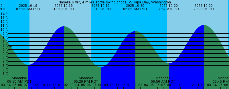 2025-10-19 05:50 AM PDT Moonrise 2025-10-19 07:23 AM PDT 1.14 feet Low Tide 2025-10-19 07:38 AM PDT Sunrise 2025-10-19 01:35 PM PDT 10.86 feet High Tide 2025-10-19 05:29 PM PDT Moonset 2025-10-19 06:20 PM PDT Sunset 2025-10-19 08:01 PM PDT 0.53 feet Low Tide 2025-10-20 02:05 AM PDT 9.64 feet High Tide 2025-10-20 06:56 AM PDT Moonrise 2025-10-20 07:40 AM PDT Sunrise 2025-10-20 07:57 AM PDT 1.52 feet Low Tide 2025-10-20 02:03 PM PDT 11.18 feet High Tide 2025-10-20 05:45 PM PDT Moonset 2025-10-20 06:19 PM PDT Sunset 2025-10-20 08:37 PM PDT 0.09 feet Low Tide 2025-10-21 02:46 AM PDT 9.64 feet High Tide 2025-10-21 05:25 AM PDT New Moon 2025-10-21 07:41 AM PDT Sunrise 2025-10-21 08:03 AM PDT Moonrise 2025-10-21 08:30 AM PDT 1.97 feet Low Tide 2025-10-21 02:29 PM PDT 11.36 feet High Tide 2025-10-21 06:03 PM PDT Moonset 2025-10-21 06:17 PM PDT Sunset 2025-10-21 09:10 PM PDT -0.17 feet Low Tide 2025-10-22 03:26 AM PDT 9.58 feet High Tide 2025-10-22 07:43 AM PDT Sunrise 2025-10-22 09:00 AM PDT 2.45 feet Low Tide 2025-10-22 09:10 AM PDT Moonrise 2025-10-22 02:56 PM PDT 11.41 feet High Tide 2025-10-22 06:15 PM PDT Sunset 2025-10-22 06:24 PM PDT Moonset 2025-10-22 09:43 PM PDT -0.27 feet Low Tide |