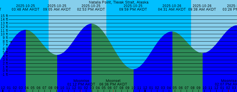 2025-10-24 12:03 PM AKDT Moonrise 2025-10-24 02:24 PM AKDT 13.20 feet High Tide 2025-10-24 05:30 PM AKDT Sunset 2025-10-24 05:59 PM AKDT Moonset 2025-10-24 09:21 PM AKDT 0.04 feet Low Tide 2025-10-25 03:48 AM AKDT 11.21 feet High Tide 2025-10-25 07:43 AM AKDT Sunrise 2025-10-25 09:05 AM AKDT 4.37 feet Low Tide 2025-10-25 01:12 PM AKDT Moonrise 2025-10-25 02:53 PM AKDT 12.86 feet High Tide 2025-10-25 05:28 PM AKDT Sunset 2025-10-25 06:36 PM AKDT Moonset 2025-10-25 09:59 PM AKDT 0.47 feet Low Tide 2025-10-26 04:31 AM AKDT 10.74 feet High Tide 2025-10-26 07:45 AM AKDT Sunrise 2025-10-26 09:38 AM AKDT 4.85 feet Low Tide 2025-10-26 02:07 PM AKDT Moonrise 2025-10-26 03:26 PM AKDT 12.42 feet High Tide 2025-10-26 05:25 PM AKDT Sunset 2025-10-26 07:29 PM AKDT Moonset 2025-10-26 10:42 PM AKDT 0.95 feet Low Tide 2025-10-27 05:24 AM AKDT 10.29 feet High Tide 2025-10-27 07:47 AM AKDT Sunrise 2025-10-27 10:18 AM AKDT 5.29 feet Low Tide 2025-10-27 02:44 PM AKDT Moonrise 2025-10-27 04:05 PM AKDT 11.89 feet High Tide 2025-10-27 05:23 PM AKDT Sunset 2025-10-27 08:40 PM AKDT Moonset 2025-10-27 11:34 PM AKDT 1.40 feet Low Tide 2025-10-28 06:32 AM AKDT 10.00 feet High Tide 2025-10-28 07:49 AM AKDT Sunrise |