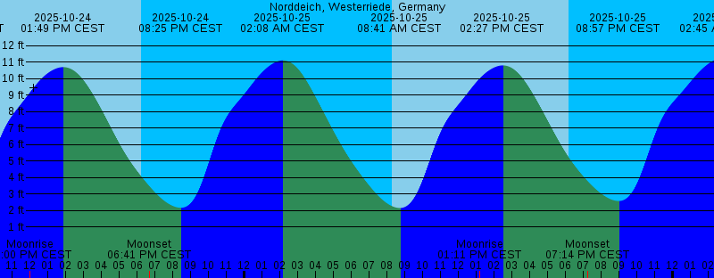 2025-10-24 08:11 AM CEST 2.07 feet Low Tide 2025-10-24 08:15 AM CEST Sunrise 2025-10-24 12:00 PM CEST Moonrise 2025-10-24 01:49 PM CEST 10.70 feet High Tide 2025-10-24 06:14 PM CEST Sunset 2025-10-24 06:41 PM CEST Moonset 2025-10-24 08:25 PM CEST 2.16 feet Low Tide 2025-10-25 02:08 AM CEST 11.10 feet High Tide 2025-10-25 08:17 AM CEST Sunrise 2025-10-25 08:41 AM CEST 2.14 feet Low Tide 2025-10-25 01:11 PM CEST Moonrise 2025-10-25 02:27 PM CEST 10.80 feet High Tide 2025-10-25 06:12 PM CEST Sunset 2025-10-25 07:14 PM CEST Moonset 2025-10-25 08:57 PM CEST 2.57 feet Low Tide 2025-10-26 02:45 AM CEST 11.25 feet High Tide 2025-10-26 07:19 AM CET Sunrise 2025-10-26 08:15 AM CET 2.63 feet Low Tide 2025-10-26 01:10 PM CET Moonrise 2025-10-26 02:05 PM CET 10.70 feet High Tide 2025-10-26 05:10 PM CET Sunset 2025-10-26 07:02 PM CET Moonset 2025-10-26 08:27 PM CET 3.38 feet Low Tide 2025-10-27 02:21 AM CET 11.16 feet High Tide 2025-10-27 07:21 AM CET Sunrise 2025-10-27 08:49 AM CET 3.41 feet Low Tide 2025-10-27 01:55 PM CET Moonrise 2025-10-27 02:41 PM CET 10.39 feet High Tide 2025-10-27 05:08 PM CET Sunset 2025-10-27 08:05 PM CET Moonset 2025-10-27 08:50 PM CET 4.26 feet Low Tide |