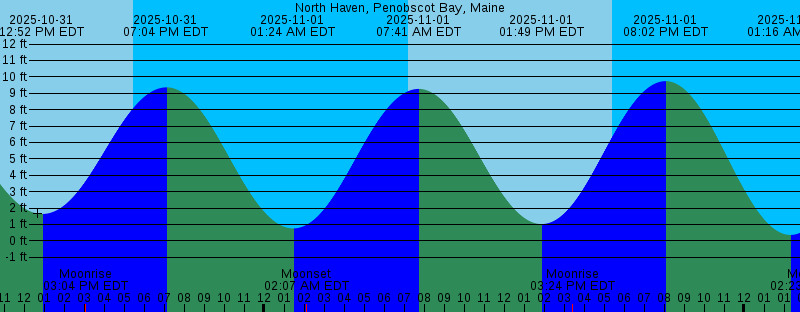 | 2025-10-31 06:47 AM EDT 8.68 feet High Tide 2025-10-31 07:11 AM EDT Sunrise 2025-10-31 12:52 PM EDT 1.64 feet Low Tide 2025-10-31 03:04 PM EDT Moonrise 2025-10-31 05:26 PM EDT Sunset 2025-10-31 07:04 PM EDT 9.36 feet High Tide 2025-11-01 01:24 AM EDT 0.76 feet Low Tide 2025-11-01 02:07 AM EDT Moonset 2025-11-01 07:12 AM EDT Sunrise 2025-11-01 07:41 AM EDT 9.26 feet High Tide 2025-11-01 01:49 PM EDT 1.02 feet Low Tide 2025-11-01 03:24 PM EDT Moonrise 2025-11-01 05:24 PM EDT Sunset 2025-11-01 08:02 PM EDT 9.74 feet High Tide 2025-11-02 01:16 AM EST 0.36 feet Low Tide 2025-11-02 02:23 AM EST Moonset 2025-11-02 06:13 AM EST Sunrise 2025-11-02 07:32 AM EST 9.98 feet High Tide 2025-11-02 01:44 PM EST 0.28 feet Low Tide 2025-11-02 02:45 PM EST Moonrise 2025-11-02 04:23 PM EST Sunset 2025-11-02 07:56 PM EST 10.16 feet High Tide 2025-11-03 02:06 AM EST -0.05 feet Low Tide 2025-11-03 03:41 AM EST Moonset 2025-11-03 06:15 AM EST Sunrise 2025-11-03 08:20 AM EST 10.74 feet High Tide 2025-11-03 02:36 PM EST -0.48 feet Low Tide 2025-11-03 03:06 PM EST Moonrise 2025-11-03 04:22 PM EST Sunset 2025-11-03 08:49 PM EST 10.55 feet High Tide 2025-11-04 02:54 AM EST -0.39 feet Low Tide | Other Nearby Tide Stations |