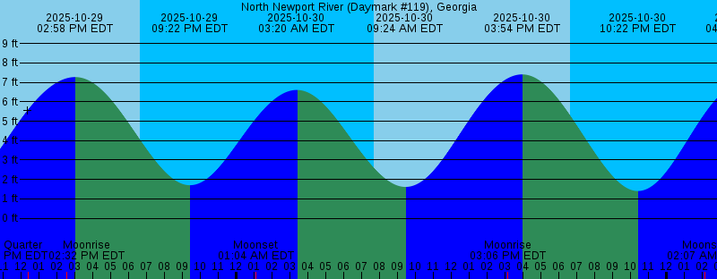 2025-10-29 02:23 AM EDT 6.39 feet High Tide 2025-10-29 07:38 AM EDT Sunrise 2025-10-29 08:19 AM EDT 1.67 feet Low Tide 2025-10-29 12:22 PM EDT First Quarter 2025-10-29 02:31 PM EDT Moonrise 2025-10-29 02:58 PM EDT 7.27 feet High Tide 2025-10-29 06:37 PM EDT Sunset 2025-10-29 09:22 PM EDT 1.70 feet Low Tide 2025-10-30 01:04 AM EDT Moonset 2025-10-30 03:20 AM EDT 6.61 feet High Tide 2025-10-30 07:39 AM EDT Sunrise 2025-10-30 09:24 AM EDT 1.61 feet Low Tide 2025-10-30 03:06 PM EDT Moonrise 2025-10-30 03:54 PM EDT 7.41 feet High Tide 2025-10-30 06:36 PM EDT Sunset 2025-10-30 10:22 PM EDT 1.40 feet Low Tide 2025-10-31 02:07 AM EDT Moonset 2025-10-31 04:17 AM EDT 6.99 feet High Tide 2025-10-31 07:40 AM EDT Sunrise 2025-10-31 10:32 AM EDT 1.39 feet Low Tide 2025-10-31 03:38 PM EDT Moonrise 2025-10-31 04:50 PM EDT 7.60 feet High Tide 2025-10-31 06:35 PM EDT Sunset 2025-10-31 11:18 PM EDT 0.96 feet Low Tide 2025-11-01 03:11 AM EDT Moonset 2025-11-01 05:14 AM EDT 7.51 feet High Tide 2025-11-01 07:41 AM EDT Sunrise 2025-11-01 11:36 AM EDT 1.01 feet Low Tide 2025-11-01 04:08 PM EDT Moonrise 2025-11-01 05:45 PM EDT 7.82 feet High Tide 2025-11-01 06:35 PM EDT Sunset 2025-11-02 12:10 AM EDT 0.46 feet Low Tide |