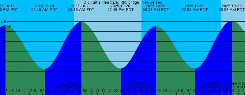 2025-10-19 05:17 PM EDT Moonset 2025-10-19 06:14 PM EDT Sunset 2025-10-19 07:54 PM EDT 4.62 feet High Tide 2025-10-20 02:19 AM EDT 0.24 feet Low Tide 2025-10-20 06:22 AM EDT Moonrise 2025-10-20 07:14 AM EDT Sunrise 2025-10-20 08:19 AM EDT 4.96 feet High Tide 2025-10-20 02:45 PM EDT 0.29 feet Low Tide 2025-10-20 05:38 PM EDT Moonset 2025-10-20 06:13 PM EDT Sunset 2025-10-20 08:31 PM EDT 4.51 feet High Tide 2025-10-21 02:53 AM EDT 0.28 feet Low Tide 2025-10-21 07:15 AM EDT Sunrise 2025-10-21 07:23 AM EDT Moonrise 2025-10-21 08:25 AM EDT New Moon 2025-10-21 08:53 AM EDT 5.06 feet High Tide 2025-10-21 03:24 PM EDT 0.28 feet Low Tide 2025-10-21 06:01 PM EDT Moonset 2025-10-21 06:11 PM EDT Sunset 2025-10-21 09:07 PM EDT 4.36 feet High Tide 2025-10-22 03:25 AM EDT 0.36 feet Low Tide 2025-10-22 07:16 AM EDT Sunrise 2025-10-22 08:25 AM EDT Moonrise 2025-10-22 09:27 AM EDT 5.09 feet High Tide 2025-10-22 04:02 PM EDT 0.32 feet Low Tide 2025-10-22 06:10 PM EDT Sunset 2025-10-22 06:27 PM EDT Moonset 2025-10-22 09:42 PM EDT 4.18 feet High Tide 2025-10-23 03:55 AM EDT 0.48 feet Low Tide 2025-10-23 07:17 AM EDT Sunrise 2025-10-23 09:27 AM EDT Moonrise 2025-10-23 10:01 AM EDT 5.06 feet High Tide 2025-10-23 04:41 PM EDT 0.42 feet Low Tide |