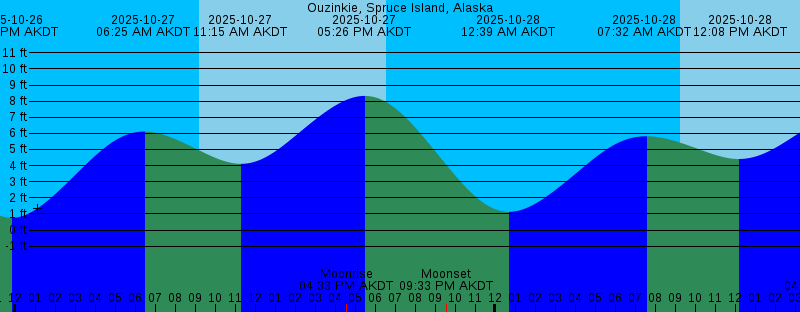 2025-10-26 08:16 PM AKDT Moonset 2025-10-26 11:48 PM AKDT 0.76 feet Low Tide 2025-10-27 06:25 AM AKDT 6.11 feet High Tide 2025-10-27 09:13 AM AKDT Sunrise 2025-10-27 11:15 AM AKDT 4.11 feet Low Tide 2025-10-27 04:33 PM AKDT Moonrise 2025-10-27 05:26 PM AKDT 8.33 feet High Tide 2025-10-27 06:33 PM AKDT Sunset 2025-10-27 09:33 PM AKDT Moonset 2025-10-28 12:39 AM AKDT 1.13 feet Low Tide 2025-10-28 07:32 AM AKDT 5.82 feet High Tide 2025-10-28 09:15 AM AKDT Sunrise 2025-10-28 12:08 PM AKDT 4.41 feet Low Tide 2025-10-28 04:49 PM AKDT Moonrise 2025-10-28 06:21 PM AKDT 7.77 feet High Tide 2025-10-28 06:30 PM AKDT Sunset 2025-10-28 11:02 PM AKDT Moonset 2025-10-29 01:42 AM AKDT 1.38 feet Low Tide 2025-10-29 08:22 AM AKDT First Quarter 2025-10-29 08:55 AM AKDT 5.86 feet High Tide 2025-10-29 09:18 AM AKDT Sunrise 2025-10-29 01:30 PM AKDT 4.51 feet Low Tide 2025-10-29 04:59 PM AKDT Moonrise 2025-10-29 06:28 PM AKDT Sunset 2025-10-29 07:33 PM AKDT 7.28 feet High Tide 2025-10-30 12:34 AM AKDT Moonset 2025-10-30 02:53 AM AKDT 1.43 feet Low Tide 2025-10-30 09:20 AM AKDT Sunrise 2025-10-30 10:04 AM AKDT 6.28 feet High Tide 2025-10-30 03:11 PM AKDT 4.14 feet Low Tide 2025-10-30 05:05 PM AKDT Moonrise 2025-10-30 06:25 PM AKDT Sunset |