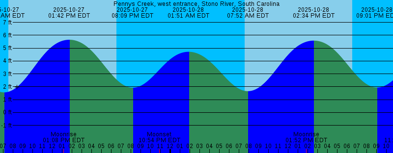 2025-10-27 07:03 AM EDT 1.56 feet Low Tide 2025-10-27 07:34 AM EDT Sunrise 2025-10-27 01:08 PM EDT Moonrise 2025-10-27 01:42 PM EDT 5.65 feet High Tide 2025-10-27 06:33 PM EDT Sunset 2025-10-27 08:09 PM EDT 1.92 feet Low Tide 2025-10-27 10:54 PM EDT Moonset 2025-10-28 01:51 AM EDT 4.72 feet High Tide 2025-10-28 07:34 AM EDT Sunrise 2025-10-28 07:52 AM EDT 1.65 feet Low Tide 2025-10-28 01:52 PM EDT Moonrise 2025-10-28 02:34 PM EDT 5.59 feet High Tide 2025-10-28 06:32 PM EDT Sunset 2025-10-28 09:01 PM EDT 1.94 feet Low Tide 2025-10-28 11:54 PM EDT Moonset 2025-10-29 02:45 AM EDT 4.73 feet High Tide 2025-10-29 07:35 AM EDT Sunrise 2025-10-29 08:49 AM EDT 1.68 feet Low Tide 2025-10-29 12:22 PM EDT First Quarter 2025-10-29 02:30 PM EDT Moonrise 2025-10-29 03:32 PM EDT 5.59 feet High Tide 2025-10-29 06:31 PM EDT Sunset 2025-10-29 09:57 PM EDT 1.79 feet Low Tide 2025-10-30 12:57 AM EDT Moonset 2025-10-30 03:47 AM EDT 4.87 feet High Tide 2025-10-30 07:36 AM EDT Sunrise 2025-10-30 09:54 AM EDT 1.60 feet Low Tide 2025-10-30 03:03 PM EDT Moonrise 2025-10-30 04:32 PM EDT 5.68 feet High Tide 2025-10-30 06:30 PM EDT Sunset 2025-10-30 10:53 PM EDT 1.46 feet Low Tide 2025-10-31 02:01 AM EDT Moonset 2025-10-31 04:50 AM EDT 5.16 feet High Tide |
