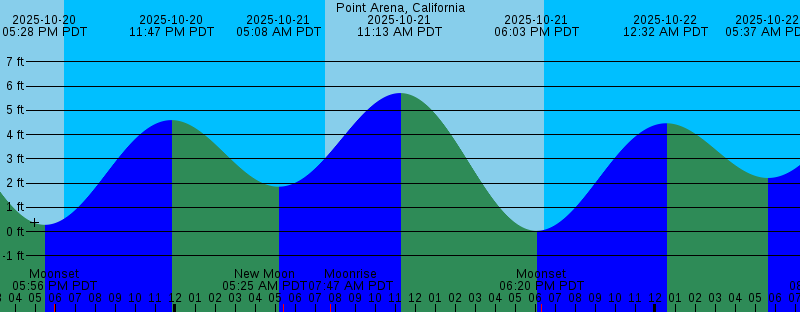 2025-10-20 05:28 PM PDT 0.28 feet Low Tide 2025-10-20 05:56 PM PDT Moonset 2025-10-20 06:28 PM PDT Sunset 2025-10-20 11:47 PM PDT 4.60 feet High Tide 2025-10-21 05:08 AM PDT 1.85 feet Low Tide 2025-10-21 05:25 AM PDT New Moon 2025-10-21 07:30 AM PDT Sunrise 2025-10-21 07:47 AM PDT Moonrise 2025-10-21 11:13 AM PDT 5.72 feet High Tide 2025-10-21 06:03 PM PDT 0.03 feet Low Tide 2025-10-21 06:20 PM PDT Moonset 2025-10-21 06:27 PM PDT Sunset 2025-10-22 12:32 AM PDT 4.47 feet High Tide 2025-10-22 05:37 AM PDT 2.21 feet Low Tide 2025-10-22 07:31 AM PDT Sunrise 2025-10-22 08:49 AM PDT Moonrise 2025-10-22 11:37 AM PDT 5.73 feet High Tide 2025-10-22 06:25 PM PDT Sunset 2025-10-22 06:38 PM PDT -0.11 feet Low Tide 2025-10-22 06:47 PM PDT Moonset 2025-10-23 01:17 AM PDT 4.33 feet High Tide 2025-10-23 06:05 AM PDT 2.54 feet Low Tide 2025-10-23 07:32 AM PDT Sunrise 2025-10-23 09:50 AM PDT Moonrise 2025-10-23 12:03 PM PDT 5.68 feet High Tide 2025-10-23 06:24 PM PDT Sunset 2025-10-23 07:14 PM PDT -0.13 feet Low Tide 2025-10-23 07:18 PM PDT Moonset 2025-10-24 02:04 AM PDT 4.19 feet High Tide 2025-10-24 06:35 AM PDT 2.82 feet Low Tide 2025-10-24 07:34 AM PDT Sunrise 2025-10-24 10:51 AM PDT Moonrise 2025-10-24 12:31 PM PDT 5.57 feet High Tide |