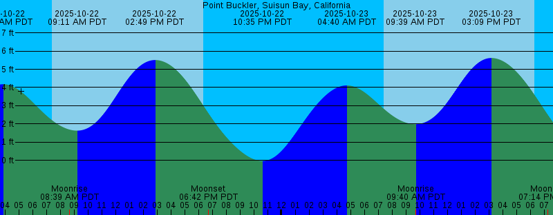 2025-10-21 09:56 PM PDT -0.02 feet Low Tide 2025-10-22 03:50 AM PDT 4.18 feet High Tide 2025-10-22 07:24 AM PDT Sunrise 2025-10-22 08:39 AM PDT Moonrise 2025-10-22 09:11 AM PDT 1.63 feet Low Tide 2025-10-22 02:49 PM PDT 5.51 feet High Tide 2025-10-22 06:20 PM PDT Sunset 2025-10-22 06:42 PM PDT Moonset 2025-10-22 10:35 PM PDT -0.03 feet Low Tide 2025-10-23 04:40 AM PDT 4.11 feet High Tide 2025-10-23 07:24 AM PDT Sunrise 2025-10-23 09:39 AM PDT 1.99 feet Low Tide 2025-10-23 09:40 AM PDT Moonrise 2025-10-23 03:09 PM PDT 5.62 feet High Tide 2025-10-23 06:18 PM PDT Sunset 2025-10-23 07:14 PM PDT Moonset 2025-10-23 11:13 PM PDT -0.00 feet Low Tide 2025-10-24 05:33 AM PDT 4.04 feet High Tide 2025-10-24 07:25 AM PDT Sunrise 2025-10-24 10:13 AM PDT 2.27 feet Low Tide 2025-10-24 10:41 AM PDT Moonrise 2025-10-24 03:35 PM PDT 5.67 feet High Tide 2025-10-24 06:17 PM PDT Sunset 2025-10-24 07:52 PM PDT Moonset 2025-10-24 11:51 PM PDT 0.04 feet Low Tide 2025-10-25 06:28 AM PDT 3.97 feet High Tide 2025-10-25 07:26 AM PDT Sunrise 2025-10-25 10:53 AM PDT 2.46 feet Low Tide 2025-10-25 11:39 AM PDT Moonrise 2025-10-25 04:10 PM PDT 5.62 feet High Tide 2025-10-25 06:16 PM PDT Sunset |