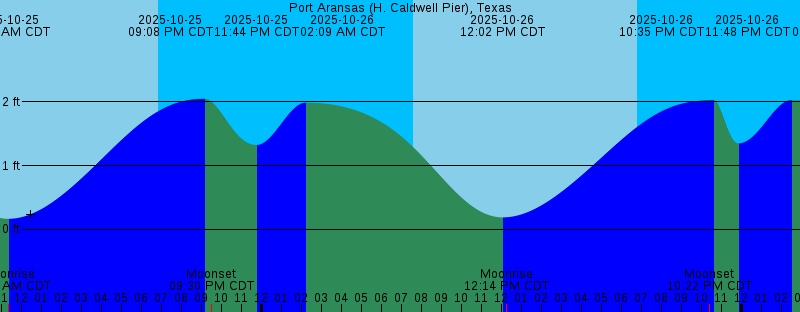 2025-10-25 02:02 AM CDT 1.94 feet High Tide 2025-10-25 07:34 AM CDT Sunrise 2025-10-25 11:18 AM CDT 0.16 feet Low Tide 2025-10-25 11:21 AM CDT Moonrise 2025-10-25 06:49 PM CDT Sunset 2025-10-25 09:08 PM CDT 2.05 feet High Tide 2025-10-25 09:30 PM CDT Moonset 2025-10-25 11:44 PM CDT 1.32 feet Low Tide 2025-10-26 02:09 AM CDT 1.99 feet High Tide 2025-10-26 07:35 AM CDT Sunrise 2025-10-26 12:02 PM CDT 0.19 feet Low Tide 2025-10-26 12:14 PM CDT Moonrise 2025-10-26 06:48 PM CDT Sunset 2025-10-26 10:22 PM CDT Moonset 2025-10-26 10:35 PM CDT 2.03 feet High Tide 2025-10-26 11:48 PM CDT 1.35 feet Low Tide 2025-10-27 02:26 AM CDT 2.03 feet High Tide 2025-10-27 07:36 AM CDT Sunrise 2025-10-27 12:52 PM CDT 0.22 feet Low Tide 2025-10-27 01:03 PM CDT Moonrise 2025-10-27 06:47 PM CDT Sunset 2025-10-27 11:19 PM CDT Moonset 2025-10-28 02:39 AM CDT 2.05 feet High Tide 2025-10-28 07:36 AM CDT Sunrise 2025-10-28 01:48 PM CDT Moonrise 2025-10-28 01:50 PM CDT 0.25 feet Low Tide 2025-10-28 06:46 PM CDT Sunset 2025-10-29 12:18 AM CDT Moonset |