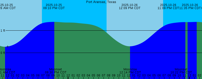 2025-10-25 07:34 AM CDT Sunrise 2025-10-25 11:21 AM CDT Moonrise 2025-10-25 11:26 AM CDT 0.27 feet Low Tide 2025-10-25 06:49 PM CDT Sunset 2025-10-25 09:10 PM CDT 1.39 feet High Tide 2025-10-25 09:30 PM CDT Moonset 2025-10-26 07:35 AM CDT Sunrise 2025-10-26 12:09 PM CDT 0.29 feet Low Tide 2025-10-26 12:14 PM CDT Moonrise 2025-10-26 06:48 PM CDT Sunset 2025-10-26 10:22 PM CDT Moonset 2025-10-26 11:09 PM CDT 1.38 feet High Tide 2025-10-26 11:35 PM CDT 1.38 feet Low Tide 2025-10-27 01:22 AM CDT 1.39 feet High Tide 2025-10-27 07:36 AM CDT Sunrise 2025-10-27 12:59 PM CDT 0.33 feet Low Tide 2025-10-27 01:03 PM CDT Moonrise 2025-10-27 06:47 PM CDT Sunset 2025-10-27 11:19 PM CDT Moonset 2025-10-28 02:15 AM CDT 1.41 feet High Tide 2025-10-28 07:36 AM CDT Sunrise 2025-10-28 01:48 PM CDT Moonrise 2025-10-28 01:55 PM CDT 0.37 feet Low Tide 2025-10-28 06:46 PM CDT Sunset 2025-10-29 12:18 AM CDT Moonset |