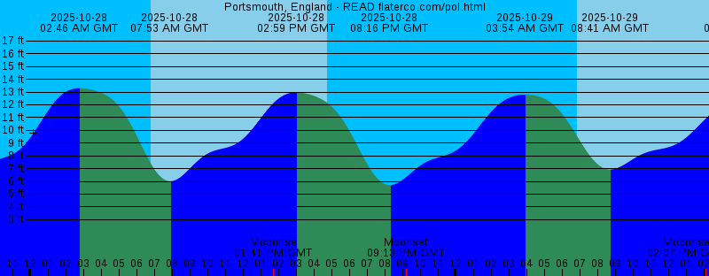2025-10-27 01:07 PM GMT Moonrise 2025-10-27 02:08 PM GMT 13.62 feet High Tide 2025-10-27 04:48 PM GMT Sunset 2025-10-27 07:34 PM GMT 4.94 feet Low Tide 2025-10-27 08:02 PM GMT Moonset 2025-10-28 02:46 AM GMT 13.30 feet High Tide 2025-10-28 06:49 AM GMT Sunrise 2025-10-28 07:53 AM GMT 6.01 feet Low Tide 2025-10-28 01:41 PM GMT Moonrise 2025-10-28 02:59 PM GMT 12.98 feet High Tide 2025-10-28 04:46 PM GMT Sunset 2025-10-28 08:16 PM GMT 5.71 feet Low Tide 2025-10-28 09:13 PM GMT Moonset 2025-10-29 03:54 AM GMT 12.80 feet High Tide 2025-10-29 06:51 AM GMT Sunrise 2025-10-29 08:41 AM GMT 6.93 feet Low Tide 2025-10-29 02:07 PM GMT Moonrise 2025-10-29 04:12 PM GMT 12.40 feet High Tide 2025-10-29 04:22 PM GMT First Quarter 2025-10-29 04:44 PM GMT Sunset 2025-10-29 09:16 PM GMT 6.57 feet Low Tide 2025-10-29 10:30 PM GMT Moonset 2025-10-30 05:10 AM GMT 12.56 feet High Tide 2025-10-30 06:52 AM GMT Sunrise 2025-10-30 10:07 AM GMT 7.68 feet Low Tide 2025-10-30 02:26 PM GMT Moonrise 2025-10-30 04:42 PM GMT Sunset 2025-10-30 05:33 PM GMT 12.19 feet High Tide 2025-10-30 11:14 PM GMT 6.86 feet Low Tide 2025-10-30 11:50 PM GMT Moonset 2025-10-31 06:24 AM GMT 12.75 feet High Tide 2025-10-31 06:54 AM GMT Sunrise 2025-10-31 12:14 PM GMT 7.21 feet Low Tide |