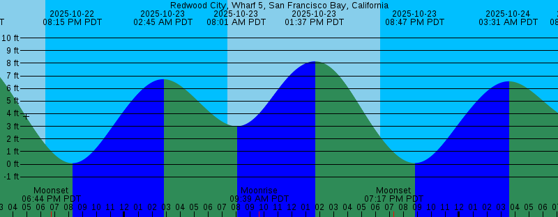 2025-10-22 06:21 PM PDT Sunset 2025-10-22 06:44 PM PDT Moonset 2025-10-22 08:14 PM PDT 0.08 feet Low Tide 2025-10-23 02:45 AM PDT 6.74 feet High Tide 2025-10-23 07:25 AM PDT Sunrise 2025-10-23 08:01 AM PDT 3.01 feet Low Tide 2025-10-23 09:39 AM PDT Moonrise 2025-10-23 01:37 PM PDT 8.15 feet High Tide 2025-10-23 06:20 PM PDT Sunset 2025-10-23 07:17 PM PDT Moonset 2025-10-23 08:47 PM PDT 0.09 feet Low Tide 2025-10-24 03:31 AM PDT 6.57 feet High Tide 2025-10-24 07:25 AM PDT Sunrise 2025-10-24 08:36 AM PDT 3.38 feet Low Tide 2025-10-24 10:40 AM PDT Moonrise 2025-10-24 02:03 PM PDT 8.05 feet High Tide 2025-10-24 06:19 PM PDT Sunset 2025-10-24 07:55 PM PDT Moonset 2025-10-24 09:20 PM PDT 0.17 feet Low Tide 2025-10-25 04:19 AM PDT 6.40 feet High Tide 2025-10-25 07:26 AM PDT Sunrise 2025-10-25 09:14 AM PDT 3.69 feet Low Tide 2025-10-25 11:38 AM PDT Moonrise 2025-10-25 02:34 PM PDT 7.92 feet High Tide 2025-10-25 06:18 PM PDT Sunset 2025-10-25 08:41 PM PDT Moonset 2025-10-25 09:56 PM PDT 0.32 feet Low Tide 2025-10-26 05:10 AM PDT 6.24 feet High Tide 2025-10-26 07:27 AM PDT Sunrise 2025-10-26 09:58 AM PDT 3.94 feet Low Tide 2025-10-26 12:31 PM PDT Moonrise |
