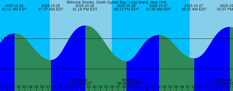 2025-10-25 05:58 PM EDT Sunset 2025-10-25 07:44 PM EDT 0.19 feet Low Tide 2025-10-25 08:07 PM EDT Moonset 2025-10-26 01:11 AM EDT 1.17 feet High Tide 2025-10-26 07:17 AM EDT Sunrise 2025-10-26 07:27 AM EDT 0.30 feet Low Tide 2025-10-26 12:22 PM EDT Moonrise 2025-10-26 01:19 PM EDT 1.43 feet High Tide 2025-10-26 05:57 PM EDT Sunset 2025-10-26 08:23 PM EDT 0.25 feet Low Tide 2025-10-26 08:58 PM EDT Moonset 2025-10-27 01:58 AM EDT 1.12 feet High Tide 2025-10-27 07:18 AM EDT Sunrise 2025-10-27 08:02 AM EDT 0.35 feet Low Tide 2025-10-27 01:10 PM EDT Moonrise 2025-10-27 02:07 PM EDT 1.38 feet High Tide 2025-10-27 05:56 PM EDT Sunset 2025-10-27 09:09 PM EDT 0.31 feet Low Tide 2025-10-27 09:58 PM EDT Moonset 2025-10-28 02:51 AM EDT 1.10 feet High Tide 2025-10-28 07:19 AM EDT Sunrise 2025-10-28 08:45 AM EDT 0.40 feet Low Tide 2025-10-28 01:50 PM EDT Moonrise 2025-10-28 03:01 PM EDT 1.36 feet High Tide 2025-10-28 05:54 PM EDT Sunset 2025-10-28 10:08 PM EDT 0.33 feet Low Tide 2025-10-28 11:03 PM EDT Moonset 2025-10-29 03:45 AM EDT 1.11 feet High Tide 2025-10-29 07:21 AM EDT Sunrise 2025-10-29 09:52 AM EDT 0.43 feet Low Tide 2025-10-29 12:22 PM EDT First Quarter |