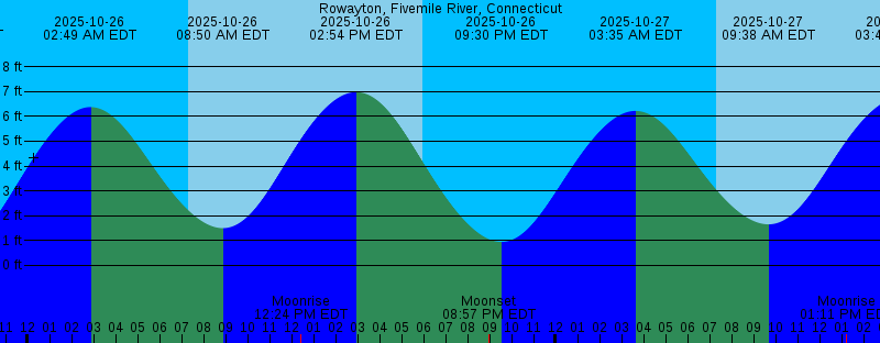 2025-10-25 02:11 PM EDT 7.22 feet High Tide 2025-10-25 05:58 PM EDT Sunset 2025-10-25 08:05 PM EDT Moonset 2025-10-25 08:45 PM EDT 0.73 feet Low Tide 2025-10-26 02:49 AM EDT 6.38 feet High Tide 2025-10-26 07:18 AM EDT Sunrise 2025-10-26 08:50 AM EDT 1.49 feet Low Tide 2025-10-26 12:24 PM EDT Moonrise 2025-10-26 02:54 PM EDT 6.98 feet High Tide 2025-10-26 05:56 PM EDT Sunset 2025-10-26 08:57 PM EDT Moonset 2025-10-26 09:30 PM EDT 0.94 feet Low Tide 2025-10-27 03:35 AM EDT 6.22 feet High Tide 2025-10-27 07:19 AM EDT Sunrise 2025-10-27 09:38 AM EDT 1.65 feet Low Tide 2025-10-27 01:11 PM EDT Moonrise 2025-10-27 03:42 PM EDT 6.79 feet High Tide 2025-10-27 05:55 PM EDT Sunset 2025-10-27 09:56 PM EDT Moonset 2025-10-27 10:21 PM EDT 1.08 feet Low Tide 2025-10-28 04:26 AM EDT 6.14 feet High Tide 2025-10-28 07:20 AM EDT Sunrise 2025-10-28 10:33 AM EDT 1.73 feet Low Tide 2025-10-28 01:51 PM EDT Moonrise 2025-10-28 04:37 PM EDT 6.67 feet High Tide 2025-10-28 05:54 PM EDT Sunset 2025-10-28 11:01 PM EDT Moonset 2025-10-28 11:16 PM EDT 1.12 feet Low Tide 2025-10-29 05:22 AM EDT 6.17 feet High Tide 2025-10-29 07:21 AM EDT Sunrise 2025-10-29 11:32 AM EDT 1.67 feet Low Tide 2025-10-29 12:22 PM EDT First Quarter |