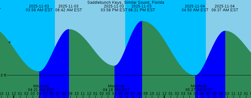 2025-11-02 03:23 PM EST 0.14 feet Low Tide 2025-11-02 03:42 PM EST Moonrise 2025-11-02 05:45 PM EST Sunset 2025-11-02 07:48 PM EST 0.76 feet High Tide 2025-11-03 03:59 AM EST 0.06 feet Low Tide 2025-11-03 04:21 AM EST Moonset 2025-11-03 06:34 AM EST Sunrise 2025-11-03 08:42 AM EST 0.72 feet High Tide 2025-11-03 03:58 PM EST 0.15 feet Low Tide 2025-11-03 04:18 PM EST Moonrise 2025-11-03 05:44 PM EST Sunset 2025-11-03 08:21 PM EST 0.84 feet High Tide 2025-11-04 04:50 AM EST -0.00 feet Low Tide 2025-11-04 05:27 AM EST Moonset 2025-11-04 06:35 AM EST Sunrise 2025-11-04 09:37 AM EST 0.69 feet High Tide 2025-11-04 04:34 PM EST 0.15 feet Low Tide 2025-11-04 04:59 PM EST Moonrise 2025-11-04 05:44 PM EST Sunset 2025-11-04 08:57 PM EST 0.91 feet High Tide 2025-11-05 05:40 AM EST -0.05 feet Low Tide 2025-11-05 06:36 AM EST Sunrise 2025-11-05 06:37 AM EST Moonset 2025-11-05 08:20 AM EST Full Moon 2025-11-05 10:30 AM EST 0.65 feet High Tide 2025-11-05 05:11 PM EST 0.15 feet Low Tide 2025-11-05 05:43 PM EST Sunset 2025-11-05 05:45 PM EST Moonrise 2025-11-05 09:36 PM EST 0.96 feet High Tide 2025-11-06 06:31 AM EST -0.07 feet Low Tide 2025-11-06 06:36 AM EST Sunrise 2025-11-06 07:49 AM EST Moonset 2025-11-06 11:21 AM EST 0.60 feet High Tide |