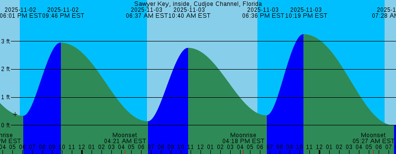 2025-11-02 05:43 AM EST 0.30 feet Low Tide 2025-11-02 06:34 AM EST Sunrise 2025-11-02 09:41 AM EST 2.80 feet High Tide 2025-11-02 03:41 PM EST Moonrise 2025-11-02 05:45 PM EST Sunset 2025-11-02 06:01 PM EST 0.34 feet Low Tide 2025-11-02 09:46 PM EST 2.95 feet High Tide 2025-11-03 04:21 AM EST Moonset 2025-11-03 06:34 AM EST Sunrise 2025-11-03 06:37 AM EST 0.14 feet Low Tide 2025-11-03 10:40 AM EST 2.77 feet High Tide 2025-11-03 04:18 PM EST Moonrise 2025-11-03 05:44 PM EST Sunset 2025-11-03 06:36 PM EST 0.35 feet Low Tide 2025-11-03 10:19 PM EST 3.25 feet High Tide 2025-11-04 05:27 AM EST Moonset 2025-11-04 06:35 AM EST Sunrise 2025-11-04 07:28 AM EST -0.00 feet Low Tide 2025-11-04 11:35 AM EST 2.67 feet High Tide 2025-11-04 04:58 PM EST Moonrise 2025-11-04 05:43 PM EST Sunset 2025-11-04 07:12 PM EST 0.36 feet Low Tide 2025-11-04 10:55 PM EST 3.52 feet High Tide 2025-11-05 06:36 AM EST Sunrise 2025-11-05 06:37 AM EST Moonset 2025-11-05 08:18 AM EST -0.11 feet Low Tide 2025-11-05 08:20 AM EST Full Moon 2025-11-05 12:28 PM EST 2.51 feet High Tide 2025-11-05 05:43 PM EST Sunset 2025-11-05 05:45 PM EST Moonrise 2025-11-05 07:49 PM EST 0.37 feet Low Tide 2025-11-05 11:34 PM EST 3.71 feet High Tide |