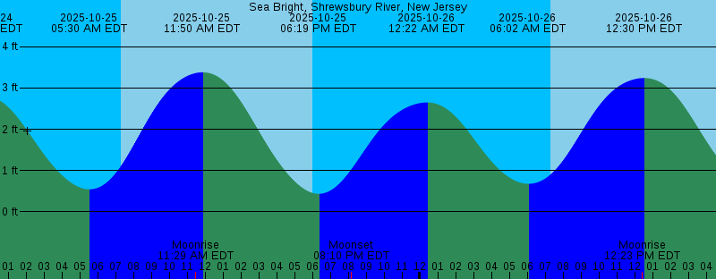 2025-10-23 11:01 PM EDT 2.97 feet High Tide 2025-10-24 04:58 AM EDT 0.40 feet Low Tide 2025-10-24 07:16 AM EDT Sunrise 2025-10-24 10:29 AM EDT Moonrise 2025-10-24 11:15 AM EDT 3.53 feet High Tide 2025-10-24 05:41 PM EDT 0.30 feet Low Tide 2025-10-24 06:02 PM EDT Sunset 2025-10-24 07:26 PM EDT Moonset 2025-10-24 11:40 PM EDT 2.80 feet High Tide 2025-10-25 05:30 AM EDT 0.54 feet Low Tide 2025-10-25 07:18 AM EDT Sunrise 2025-10-25 11:29 AM EDT Moonrise 2025-10-25 11:50 AM EDT 3.38 feet High Tide 2025-10-25 06:01 PM EDT Sunset 2025-10-25 06:19 PM EDT 0.43 feet Low Tide 2025-10-25 08:10 PM EDT Moonset 2025-10-26 12:22 AM EDT 2.65 feet High Tide 2025-10-26 06:02 AM EDT 0.68 feet Low Tide 2025-10-26 07:19 AM EDT Sunrise 2025-10-26 12:23 PM EDT Moonrise 2025-10-26 12:30 PM EDT 3.24 feet High Tide 2025-10-26 05:59 PM EDT Sunset 2025-10-26 06:58 PM EDT 0.58 feet Low Tide 2025-10-26 09:02 PM EDT Moonset 2025-10-27 01:09 AM EDT 2.54 feet High Tide 2025-10-27 06:37 AM EDT 0.80 feet Low Tide 2025-10-27 07:20 AM EDT Sunrise 2025-10-27 01:11 PM EDT Moonrise 2025-10-27 01:18 PM EDT 3.13 feet High Tide 2025-10-27 05:58 PM EDT Sunset 2025-10-27 07:44 PM EDT 0.70 feet Low Tide 2025-10-27 10:01 PM EDT Moonset |