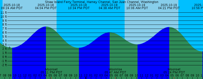 2025-10-18 07:36 AM PDT Sunrise 2025-10-18 09:24 AM PDT 2.30 feet Low Tide 2025-10-18 04:04 PM PDT 7.54 feet High Tide 2025-10-18 05:11 PM PDT Moonset 2025-10-18 06:15 PM PDT Sunset 2025-10-18 10:34 PM PDT 2.29 feet Low Tide 2025-10-19 04:38 AM PDT 6.12 feet High Tide 2025-10-19 05:47 AM PDT Moonrise 2025-10-19 07:38 AM PDT Sunrise 2025-10-19 10:06 AM PDT 3.13 feet Low Tide 2025-10-19 04:21 PM PDT 7.42 feet High Tide 2025-10-19 05:24 PM PDT Moonset 2025-10-19 06:13 PM PDT Sunset 2025-10-19 10:56 PM PDT 1.40 feet Low Tide 2025-10-20 05:33 AM PDT 6.53 feet High Tide 2025-10-20 06:55 AM PDT Moonrise 2025-10-20 07:40 AM PDT Sunrise 2025-10-20 10:45 AM PDT 3.99 feet Low Tide 2025-10-20 04:34 PM PDT 7.32 feet High Tide 2025-10-20 05:37 PM PDT Moonset 2025-10-20 06:11 PM PDT Sunset 2025-10-20 11:20 PM PDT 0.60 feet Low Tide 2025-10-21 05:25 AM PDT New Moon 2025-10-21 06:23 AM PDT 6.91 feet High Tide 2025-10-21 07:41 AM PDT Sunrise 2025-10-21 08:04 AM PDT Moonrise 2025-10-21 11:23 AM PDT 4.82 feet Low Tide 2025-10-21 04:47 PM PDT 7.25 feet High Tide 2025-10-21 05:53 PM PDT Moonset 2025-10-21 06:10 PM PDT Sunset 2025-10-21 11:46 PM PDT -0.06 feet Low Tide |