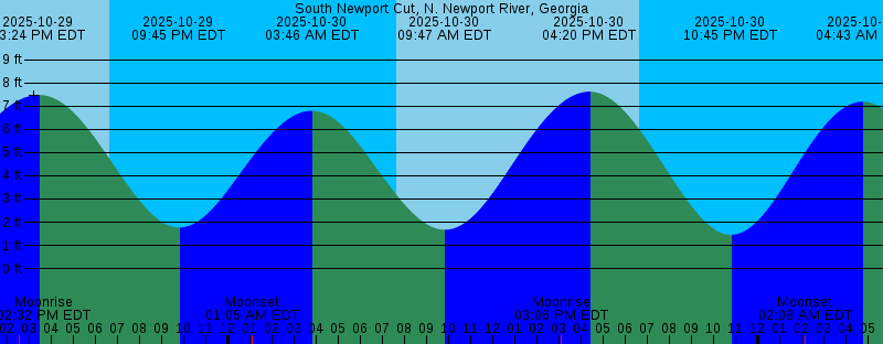 2025-10-29 12:22 PM EDT First Quarter 2025-10-29 02:32 PM EDT Moonrise 2025-10-29 03:24 PM EDT 7.48 feet High Tide 2025-10-29 06:38 PM EDT Sunset 2025-10-29 09:45 PM EDT 1.77 feet Low Tide 2025-10-30 01:05 AM EDT Moonset 2025-10-30 03:46 AM EDT 6.80 feet High Tide 2025-10-30 07:39 AM EDT Sunrise 2025-10-30 09:47 AM EDT 1.68 feet Low Tide 2025-10-30 03:06 PM EDT Moonrise 2025-10-30 04:20 PM EDT 7.62 feet High Tide 2025-10-30 06:37 PM EDT Sunset 2025-10-30 10:45 PM EDT 1.46 feet Low Tide 2025-10-31 02:08 AM EDT Moonset 2025-10-31 04:43 AM EDT 7.19 feet High Tide 2025-10-31 07:40 AM EDT Sunrise 2025-10-31 10:55 AM EDT 1.44 feet Low Tide 2025-10-31 03:38 PM EDT Moonrise 2025-10-31 05:16 PM EDT 7.82 feet High Tide 2025-10-31 06:36 PM EDT Sunset 2025-10-31 11:41 PM EDT 1.00 feet Low Tide 2025-11-01 03:11 AM EDT Moonset 2025-11-01 05:40 AM EDT 7.72 feet High Tide 2025-11-01 07:41 AM EDT Sunrise 2025-11-01 11:59 AM EDT 1.05 feet Low Tide 2025-11-01 04:08 PM EDT Moonrise 2025-11-01 06:11 PM EDT 8.04 feet High Tide 2025-11-01 06:35 PM EDT Sunset 2025-11-02 12:33 AM EDT 0.48 feet Low Tide 2025-11-02 03:16 AM EST Moonset 2025-11-02 05:36 AM EST 8.34 feet High Tide 2025-11-02 06:42 AM EST Sunrise |