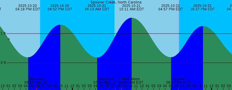2025-10-20 04:18 PM EDT 0.18 feet Low Tide 2025-10-20 05:51 PM EDT Moonset 2025-10-20 06:25 PM EDT Sunset 2025-10-20 09:52 PM EDT 1.30 feet High Tide 2025-10-21 04:13 AM EDT 0.17 feet Low Tide 2025-10-21 07:18 AM EDT Sunrise 2025-10-21 07:24 AM EDT Moonrise 2025-10-21 08:25 AM EDT New Moon 2025-10-21 10:11 AM EDT 1.54 feet High Tide 2025-10-21 04:57 PM EDT 0.19 feet Low Tide 2025-10-21 06:17 PM EDT Moonset 2025-10-21 06:24 PM EDT Sunset 2025-10-21 10:27 PM EDT 1.26 feet High Tide 2025-10-22 04:44 AM EDT 0.19 feet Low Tide 2025-10-22 07:19 AM EDT Sunrise 2025-10-22 08:23 AM EDT Moonrise 2025-10-22 10:45 AM EDT 1.55 feet High Tide 2025-10-22 05:34 PM EDT 0.21 feet Low Tide 2025-10-22 06:23 PM EDT Sunset 2025-10-22 06:46 PM EDT Moonset 2025-10-22 11:01 PM EDT 1.20 feet High Tide 2025-10-23 05:16 AM EDT 0.22 feet Low Tide 2025-10-23 07:19 AM EDT Sunrise 2025-10-23 09:22 AM EDT Moonrise 2025-10-23 11:20 AM EDT 1.54 feet High Tide 2025-10-23 06:12 PM EDT 0.25 feet Low Tide 2025-10-23 06:22 PM EDT Sunset 2025-10-23 07:19 PM EDT Moonset 2025-10-23 11:36 PM EDT 1.15 feet High Tide 2025-10-24 05:48 AM EDT 0.26 feet Low Tide 2025-10-24 07:20 AM EDT Sunrise |
