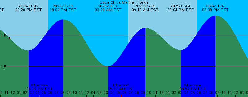 2025-11-03 06:35 AM EST Sunrise 2025-11-03 08:23 AM EST 1.28 feet High Tide 2025-11-03 02:28 PM EST 0.50 feet Low Tide 2025-11-03 04:19 PM EST Moonrise 2025-11-03 05:45 PM EST Sunset 2025-11-03 08:02 PM EST 1.50 feet High Tide 2025-11-04 03:20 AM EST -0.00 feet Low Tide 2025-11-04 05:27 AM EST Moonset 2025-11-04 06:35 AM EST Sunrise 2025-11-04 09:18 AM EST 1.23 feet High Tide 2025-11-04 03:04 PM EST 0.52 feet Low Tide 2025-11-04 04:59 PM EST Moonrise 2025-11-04 05:44 PM EST Sunset 2025-11-04 08:38 PM EST 1.62 feet High Tide 2025-11-05 04:10 AM EST -0.16 feet Low Tide 2025-11-05 06:36 AM EST Sunrise 2025-11-05 06:37 AM EST Moonset 2025-11-05 08:20 AM EST Full Moon 2025-11-05 10:11 AM EST 1.16 feet High Tide 2025-11-05 03:41 PM EST 0.52 feet Low Tide 2025-11-05 05:44 PM EST Sunset 2025-11-05 05:46 PM EST Moonrise 2025-11-05 09:17 PM EST 1.71 feet High Tide 2025-11-06 05:01 AM EST -0.24 feet Low Tide 2025-11-06 06:37 AM EST Sunrise 2025-11-06 07:49 AM EST Moonset 2025-11-06 11:02 AM EST 1.06 feet High Tide 2025-11-06 04:19 PM EST 0.52 feet Low Tide 2025-11-06 05:43 PM EST Sunset 2025-11-06 06:39 PM EST Moonrise 2025-11-06 10:01 PM EST 1.75 feet High Tide |
