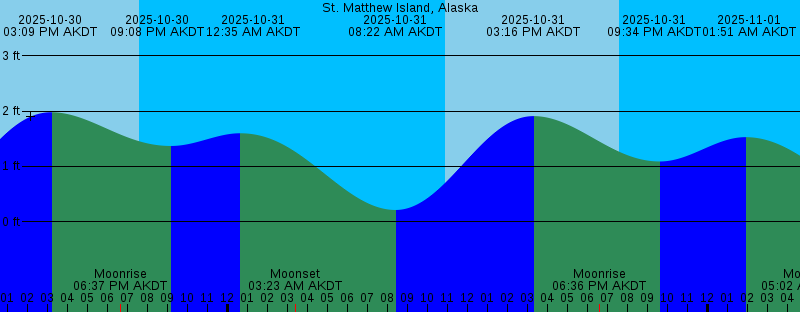 2025-10-30 10:51 AM AKDT Sunrise 2025-10-30 03:09 PM AKDT 1.98 feet High Tide 2025-10-30 06:37 PM AKDT Moonrise 2025-10-30 07:36 PM AKDT Sunset 2025-10-30 09:08 PM AKDT 1.37 feet Low Tide 2025-10-31 12:35 AM AKDT 1.60 feet High Tide 2025-10-31 03:23 AM AKDT Moonset 2025-10-31 08:22 AM AKDT 0.21 feet Low Tide 2025-10-31 10:53 AM AKDT Sunrise 2025-10-31 03:16 PM AKDT 1.91 feet High Tide 2025-10-31 06:36 PM AKDT Moonrise 2025-10-31 07:34 PM AKDT Sunset 2025-10-31 09:34 PM AKDT 1.09 feet Low Tide 2025-11-01 01:51 AM AKDT 1.53 feet High Tide 2025-11-01 05:02 AM AKDT Moonset 2025-11-01 08:53 AM AKDT 0.42 feet Low Tide 2025-11-01 10:56 AM AKDT Sunrise 2025-11-01 03:21 PM AKDT 1.90 feet High Tide 2025-11-01 06:35 PM AKDT Moonrise 2025-11-01 07:31 PM AKDT Sunset 2025-11-01 10:10 PM AKDT 0.74 feet Low Tide 2025-11-02 02:16 AM AKST 1.48 feet High Tide 2025-11-02 05:42 AM AKST Moonset 2025-11-02 08:26 AM AKST 0.70 feet Low Tide 2025-11-02 09:58 AM AKST Sunrise 2025-11-02 02:31 PM AKST 1.97 feet High Tide 2025-11-02 05:33 PM AKST Moonrise 2025-11-02 06:28 PM AKST Sunset 2025-11-02 09:54 PM AKST 0.35 feet Low Tide 2025-11-03 03:48 AM AKST 1.49 feet High Tide 2025-11-03 07:26 AM AKST Moonset 2025-11-03 09:02 AM AKST 1.02 feet Low Tide |