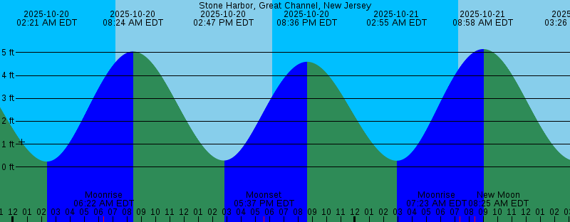 2025-10-20 02:21 AM EDT 0.24 feet Low Tide 2025-10-20 06:22 AM EDT Moonrise 2025-10-20 07:14 AM EDT Sunrise 2025-10-20 08:24 AM EDT 5.05 feet High Tide 2025-10-20 02:47 PM EDT 0.29 feet Low Tide 2025-10-20 05:37 PM EDT Moonset 2025-10-20 06:12 PM EDT Sunset 2025-10-20 08:36 PM EDT 4.60 feet High Tide 2025-10-21 02:55 AM EDT 0.28 feet Low Tide 2025-10-21 07:14 AM EDT Sunrise 2025-10-21 07:23 AM EDT Moonrise 2025-10-21 08:25 AM EDT New Moon 2025-10-21 08:58 AM EDT 5.15 feet High Tide 2025-10-21 03:26 PM EDT 0.28 feet Low Tide 2025-10-21 06:00 PM EDT Moonset 2025-10-21 06:11 PM EDT Sunset 2025-10-21 09:12 PM EDT 4.45 feet High Tide 2025-10-22 03:27 AM EDT 0.36 feet Low Tide 2025-10-22 07:15 AM EDT Sunrise 2025-10-22 08:24 AM EDT Moonrise 2025-10-22 09:32 AM EDT 5.19 feet High Tide 2025-10-22 04:04 PM EDT 0.32 feet Low Tide 2025-10-22 06:10 PM EDT Sunset 2025-10-22 06:27 PM EDT Moonset 2025-10-22 09:47 PM EDT 4.26 feet High Tide 2025-10-23 03:57 AM EDT 0.48 feet Low Tide 2025-10-23 07:16 AM EDT Sunrise 2025-10-23 09:26 AM EDT Moonrise 2025-10-23 10:06 AM EDT 5.15 feet High Tide 2025-10-23 04:43 PM EDT 0.42 feet Low Tide 2025-10-23 06:08 PM EDT Sunset 2025-10-23 06:57 PM EDT Moonset |