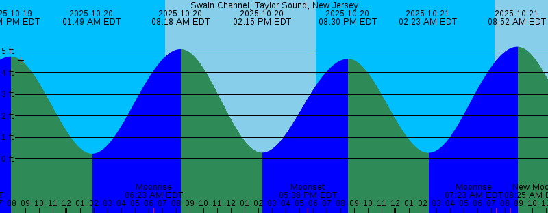 2025-10-19 05:17 PM EDT Moonset 2025-10-19 06:14 PM EDT Sunset 2025-10-19 07:53 PM EDT 4.75 feet High Tide 2025-10-20 01:49 AM EDT 0.26 feet Low Tide 2025-10-20 06:23 AM EDT Moonrise 2025-10-20 07:14 AM EDT Sunrise 2025-10-20 08:18 AM EDT 5.10 feet High Tide 2025-10-20 02:15 PM EDT 0.30 feet Low Tide 2025-10-20 05:38 PM EDT Moonset 2025-10-20 06:13 PM EDT Sunset 2025-10-20 08:30 PM EDT 4.64 feet High Tide 2025-10-21 02:23 AM EDT 0.29 feet Low Tide 2025-10-21 07:15 AM EDT Sunrise 2025-10-21 07:23 AM EDT Moonrise 2025-10-21 08:25 AM EDT New Moon 2025-10-21 08:52 AM EDT 5.20 feet High Tide 2025-10-21 02:54 PM EDT 0.29 feet Low Tide 2025-10-21 06:01 PM EDT Moonset 2025-10-21 06:11 PM EDT Sunset 2025-10-21 09:06 PM EDT 4.49 feet High Tide 2025-10-22 02:55 AM EDT 0.38 feet Low Tide 2025-10-22 07:16 AM EDT Sunrise 2025-10-22 08:25 AM EDT Moonrise 2025-10-22 09:26 AM EDT 5.24 feet High Tide 2025-10-22 03:32 PM EDT 0.34 feet Low Tide 2025-10-22 06:10 PM EDT Sunset 2025-10-22 06:27 PM EDT Moonset 2025-10-22 09:41 PM EDT 4.29 feet High Tide 2025-10-23 03:25 AM EDT 0.50 feet Low Tide 2025-10-23 07:17 AM EDT Sunrise 2025-10-23 09:26 AM EDT Moonrise 2025-10-23 10:00 AM EDT 5.20 feet High Tide 2025-10-23 04:11 PM EDT 0.45 feet Low Tide |