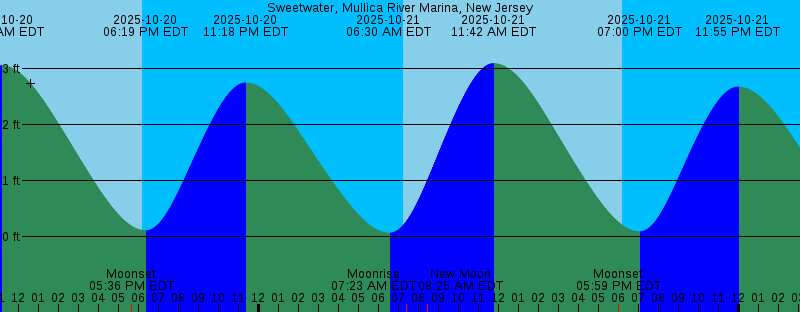 2025-10-20 11:06 AM EDT 3.06 feet High Tide 2025-10-20 05:36 PM EDT Moonset 2025-10-20 06:11 PM EDT Sunset 2025-10-20 06:19 PM EDT 0.12 feet Low Tide 2025-10-20 11:18 PM EDT 2.75 feet High Tide 2025-10-21 06:30 AM EDT 0.07 feet Low Tide 2025-10-21 07:15 AM EDT Sunrise 2025-10-21 07:23 AM EDT Moonrise 2025-10-21 08:25 AM EDT New Moon 2025-10-21 11:42 AM EDT 3.10 feet High Tide 2025-10-21 05:59 PM EDT Moonset 2025-10-21 06:10 PM EDT Sunset 2025-10-21 07:00 PM EDT 0.10 feet Low Tide 2025-10-21 11:55 PM EDT 2.68 feet High Tide 2025-10-22 07:05 AM EDT 0.14 feet Low Tide 2025-10-22 07:16 AM EDT Sunrise 2025-10-22 08:25 AM EDT Moonrise 2025-10-22 12:16 PM EDT 3.08 feet High Tide 2025-10-22 06:08 PM EDT Sunset 2025-10-22 06:25 PM EDT Moonset 2025-10-22 07:40 PM EDT 0.11 feet Low Tide 2025-10-23 12:32 AM EDT 2.57 feet High Tide 2025-10-23 07:17 AM EDT Sunrise 2025-10-23 07:39 AM EDT 0.23 feet Low Tide 2025-10-23 09:28 AM EDT Moonrise 2025-10-23 12:50 PM EDT 3.01 feet High Tide 2025-10-23 06:07 PM EDT Sunset 2025-10-23 06:55 PM EDT Moonset 2025-10-23 08:18 PM EDT 0.16 feet Low Tide 2025-10-24 01:09 AM EDT 2.44 feet High Tide 2025-10-24 07:18 AM EDT Sunrise 2025-10-24 08:12 AM EDT 0.33 feet Low Tide |