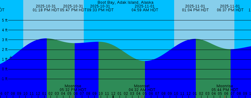 | 2025-10-31 03:09 AM HDT Moonset 2025-10-31 04:30 AM HDT 0.34 feet Low Tide 2025-10-31 09:39 AM HDT Sunrise 2025-10-31 01:18 PM HDT 3.16 feet High Tide 2025-10-31 05:32 PM HDT Moonrise 2025-10-31 05:47 PM HDT 2.66 feet Low Tide 2025-10-31 07:19 PM HDT Sunset 2025-10-31 09:33 PM HDT 2.81 feet High Tide 2025-11-01 04:32 AM HDT Moonset 2025-11-01 04:59 AM HDT 0.84 feet Low Tide 2025-11-01 09:41 AM HDT Sunrise 2025-11-01 01:04 PM HDT 3.11 feet High Tide 2025-11-01 05:44 PM HDT Moonrise 2025-11-01 06:37 PM HDT 2.05 feet Low Tide 2025-11-01 07:17 PM HDT Sunset 2025-11-01 11:38 PM HDT 2.46 feet High Tide 2025-11-02 04:22 AM HST 1.43 feet Low Tide 2025-11-02 04:57 AM HST Moonset 2025-11-02 08:43 AM HST Sunrise 2025-11-02 11:55 AM HST 3.23 feet High Tide 2025-11-02 04:57 PM HST Moonrise 2025-11-02 06:15 PM HST Sunset 2025-11-02 06:29 PM HST 1.31 feet Low Tide 2025-11-03 01:12 AM HST 2.30 feet High Tide 2025-11-03 04:30 AM HST 2.06 feet Low Tide 2025-11-03 06:25 AM HST Moonset 2025-11-03 08:44 AM HST Sunrise 2025-11-03 11:55 AM HST 3.52 feet High Tide 2025-11-03 05:10 PM HST Moonrise 2025-11-03 06:13 PM HST Sunset 2025-11-03 07:22 PM HST 0.51 feet Low Tide | Other Nearby Tide Stations |