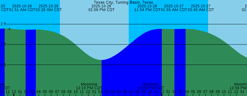 2025-10-25 01:25 PM CDT 0.21 feet Low Tide 2025-10-25 06:38 PM CDT Sunset 2025-10-25 09:16 PM CDT Moonset 2025-10-25 10:27 PM CDT 1.78 feet High Tide 2025-10-26 01:51 AM CDT 1.72 feet Low Tide 2025-10-26 03:28 AM CDT 1.73 feet High Tide 2025-10-26 07:28 AM CDT Sunrise 2025-10-26 12:10 PM CDT Moonrise 2025-10-26 02:09 PM CDT 0.24 feet Low Tide 2025-10-26 06:37 PM CDT Sunset 2025-10-26 10:09 PM CDT Moonset 2025-10-26 11:54 PM CDT 1.76 feet High Tide 2025-10-27 01:55 AM CDT 1.75 feet Low Tide 2025-10-27 03:45 AM CDT 1.76 feet High Tide 2025-10-27 07:29 AM CDT Sunrise 2025-10-27 12:59 PM CDT Moonrise 2025-10-27 02:59 PM CDT 0.28 feet Low Tide 2025-10-27 06:37 PM CDT Sunset 2025-10-27 11:05 PM CDT Moonset 2025-10-28 03:58 AM CDT 1.78 feet High Tide 2025-10-28 07:29 AM CDT Sunrise 2025-10-28 01:43 PM CDT Moonrise 2025-10-28 03:57 PM CDT 0.33 feet Low Tide 2025-10-28 06:36 PM CDT Sunset 2025-10-29 12:05 AM CDT Moonset 2025-10-29 03:15 AM CDT 1.77 feet High Tide 2025-10-29 07:30 AM CDT Sunrise 2025-10-29 11:22 AM CDT First Quarter |