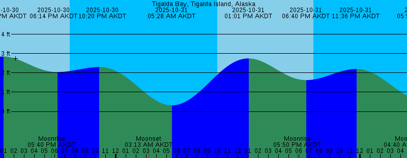2025-10-30 12:54 PM AKDT 2.85 feet High Tide 2025-10-30 05:40 PM AKDT Moonrise 2025-10-30 06:14 PM AKDT 2.04 feet Low Tide 2025-10-30 07:28 PM AKDT Sunset 2025-10-30 10:20 PM AKDT 2.30 feet High Tide 2025-10-31 03:13 AM AKDT Moonset 2025-10-31 05:28 AM AKDT 0.31 feet Low Tide 2025-10-31 10:00 AM AKDT Sunrise 2025-10-31 01:01 PM AKDT 2.75 feet High Tide 2025-10-31 05:50 PM AKDT Moonrise 2025-10-31 06:40 PM AKDT 1.62 feet Low Tide 2025-10-31 07:26 PM AKDT Sunset 2025-10-31 11:36 PM AKDT 2.20 feet High Tide 2025-11-01 04:40 AM AKDT Moonset 2025-11-01 05:59 AM AKDT 0.63 feet Low Tide 2025-11-01 10:01 AM AKDT Sunrise 2025-11-01 01:06 PM AKDT 2.74 feet High Tide 2025-11-01 05:59 PM AKDT Moonrise 2025-11-01 07:16 PM AKDT 1.10 feet Low Tide 2025-11-01 07:24 PM AKDT Sunset 2025-11-02 01:01 AM AKDT 2.13 feet High Tide 2025-11-02 05:08 AM AKST Moonset 2025-11-02 05:32 AM AKST 1.05 feet Low Tide 2025-11-02 09:03 AM AKST Sunrise 2025-11-02 12:16 PM AKST 2.83 feet High Tide 2025-11-02 05:08 PM AKST Moonrise 2025-11-02 06:22 PM AKST Sunset 2025-11-02 07:00 PM AKST 0.53 feet Low Tide 2025-11-03 01:33 AM AKST 2.15 feet High Tide 2025-11-03 06:08 AM AKST 1.53 feet Low Tide 2025-11-03 06:40 AM AKST Moonset 2025-11-03 09:05 AM AKST Sunrise |