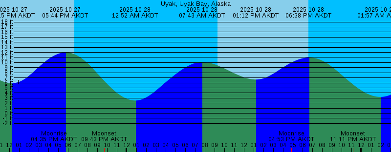 2025-10-27 12:16 PM AKDT 5.92 feet Low Tide 2025-10-27 04:35 PM AKDT Moonrise 2025-10-27 05:44 PM AKDT 11.99 feet High Tide 2025-10-27 06:39 PM AKDT Sunset 2025-10-27 09:43 PM AKDT Moonset 2025-10-28 12:52 AM AKDT 2.52 feet Low Tide 2025-10-28 07:43 AM AKDT 10.11 feet High Tide 2025-10-28 09:20 AM AKDT Sunrise 2025-10-28 01:12 PM AKDT 6.65 feet Low Tide 2025-10-28 04:53 PM AKDT Moonrise 2025-10-28 06:37 PM AKDT Sunset 2025-10-28 06:38 PM AKDT 10.99 feet High Tide 2025-10-28 11:11 PM AKDT Moonset 2025-10-29 01:57 AM AKDT 3.23 feet Low Tide 2025-10-29 08:22 AM AKDT First Quarter 2025-10-29 09:04 AM AKDT 9.94 feet High Tide 2025-10-29 09:23 AM AKDT Sunrise 2025-10-29 02:37 PM AKDT 6.92 feet Low Tide 2025-10-29 05:03 PM AKDT Moonrise 2025-10-29 06:35 PM AKDT Sunset 2025-10-29 08:02 PM AKDT 10.26 feet High Tide 2025-10-30 12:42 AM AKDT Moonset 2025-10-30 03:19 AM AKDT 3.47 feet Low Tide 2025-10-30 09:25 AM AKDT Sunrise 2025-10-30 10:19 AM AKDT 10.48 feet High Tide 2025-10-30 04:14 PM AKDT 6.25 feet Low Tide 2025-10-30 05:09 PM AKDT Moonrise 2025-10-30 06:32 PM AKDT Sunset 2025-10-30 09:39 PM AKDT 10.28 feet High Tide 2025-10-31 02:15 AM AKDT Moonset 2025-10-31 04:36 AM AKDT 3.14 feet Low Tide 2025-10-31 09:27 AM AKDT Sunrise |