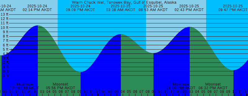 2025-10-24 02:59 AM AKDT 8.90 feet High Tide 2025-10-24 07:44 AM AKDT Sunrise 2025-10-24 08:23 AM AKDT 3.65 feet Low Tide 2025-10-24 12:10 PM AKDT Moonrise 2025-10-24 02:14 PM AKDT 10.51 feet High Tide 2025-10-24 05:30 PM AKDT Sunset 2025-10-24 05:56 PM AKDT Moonset 2025-10-24 09:09 PM AKDT -0.16 feet Low Tide 2025-10-25 03:38 AM AKDT 8.51 feet High Tide 2025-10-25 07:46 AM AKDT Sunrise 2025-10-25 08:53 AM AKDT 4.17 feet Low Tide 2025-10-25 01:20 PM AKDT Moonrise 2025-10-25 02:43 PM AKDT 10.16 feet High Tide 2025-10-25 05:28 PM AKDT Sunset 2025-10-25 06:32 PM AKDT Moonset 2025-10-25 09:47 PM AKDT 0.27 feet Low Tide 2025-10-26 04:21 AM AKDT 8.04 feet High Tide 2025-10-26 07:48 AM AKDT Sunrise 2025-10-26 09:26 AM AKDT 4.65 feet Low Tide 2025-10-26 02:14 PM AKDT Moonrise 2025-10-26 03:16 PM AKDT 9.72 feet High Tide 2025-10-26 05:26 PM AKDT Sunset 2025-10-26 07:26 PM AKDT Moonset 2025-10-26 10:30 PM AKDT 0.75 feet Low Tide 2025-10-27 05:14 AM AKDT 7.59 feet High Tide 2025-10-27 07:50 AM AKDT Sunrise 2025-10-27 10:06 AM AKDT 5.09 feet Low Tide 2025-10-27 02:51 PM AKDT Moonrise 2025-10-27 03:55 PM AKDT 9.19 feet High Tide 2025-10-27 05:24 PM AKDT Sunset 2025-10-27 08:37 PM AKDT Moonset |