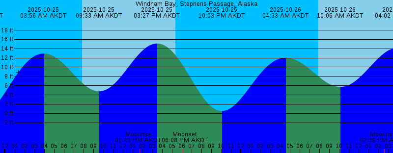 2025-10-24 12:30 PM AKDT Moonrise 2025-10-24 02:57 PM AKDT 15.80 feet High Tide 2025-10-24 05:25 PM AKDT Sunset 2025-10-24 05:36 PM AKDT Moonset 2025-10-24 09:29 PM AKDT -0.30 feet Low Tide 2025-10-25 03:56 AM AKDT 12.95 feet High Tide 2025-10-25 07:51 AM AKDT Sunrise 2025-10-25 09:33 AM AKDT 4.78 feet Low Tide 2025-10-25 01:43 PM AKDT Moonrise 2025-10-25 03:27 PM AKDT 15.12 feet High Tide 2025-10-25 05:23 PM AKDT Sunset 2025-10-25 06:08 PM AKDT Moonset 2025-10-25 10:03 PM AKDT 0.52 feet Low Tide 2025-10-26 04:33 AM AKDT 12.03 feet High Tide 2025-10-26 07:53 AM AKDT Sunrise 2025-10-26 10:06 AM AKDT 5.73 feet Low Tide 2025-10-26 02:38 PM AKDT Moonrise 2025-10-26 04:02 PM AKDT 14.26 feet High Tide 2025-10-26 05:20 PM AKDT Sunset 2025-10-26 07:02 PM AKDT Moonset 2025-10-26 10:42 PM AKDT 1.45 feet Low Tide 2025-10-27 05:19 AM AKDT 11.09 feet High Tide 2025-10-27 07:56 AM AKDT Sunrise 2025-10-27 10:47 AM AKDT 6.65 feet Low Tide 2025-10-27 03:11 PM AKDT Moonrise 2025-10-27 04:43 PM AKDT 13.27 feet High Tide 2025-10-27 05:18 PM AKDT Sunset 2025-10-27 08:17 PM AKDT Moonset 2025-10-27 11:31 PM AKDT 2.37 feet Low Tide 2025-10-28 06:24 AM AKDT 10.37 feet High Tide 2025-10-28 07:58 AM AKDT Sunrise |